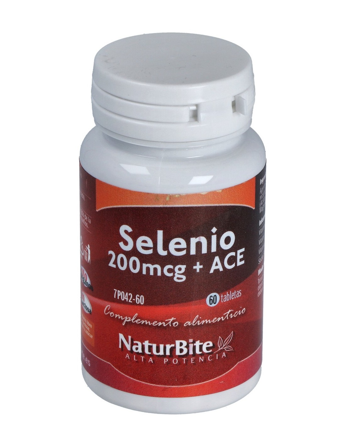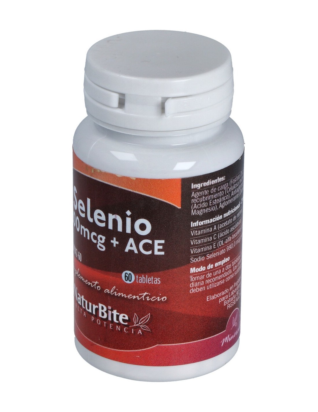Vitamina E DL-alfa-tocoferol acetato) 12 mg, Sodio Seleniato 200 mcg. Fosfato dicálcico, Celulosa microcristalina, Ácido esteárico, Dióxido de Silicio, Estearato de magnesio.