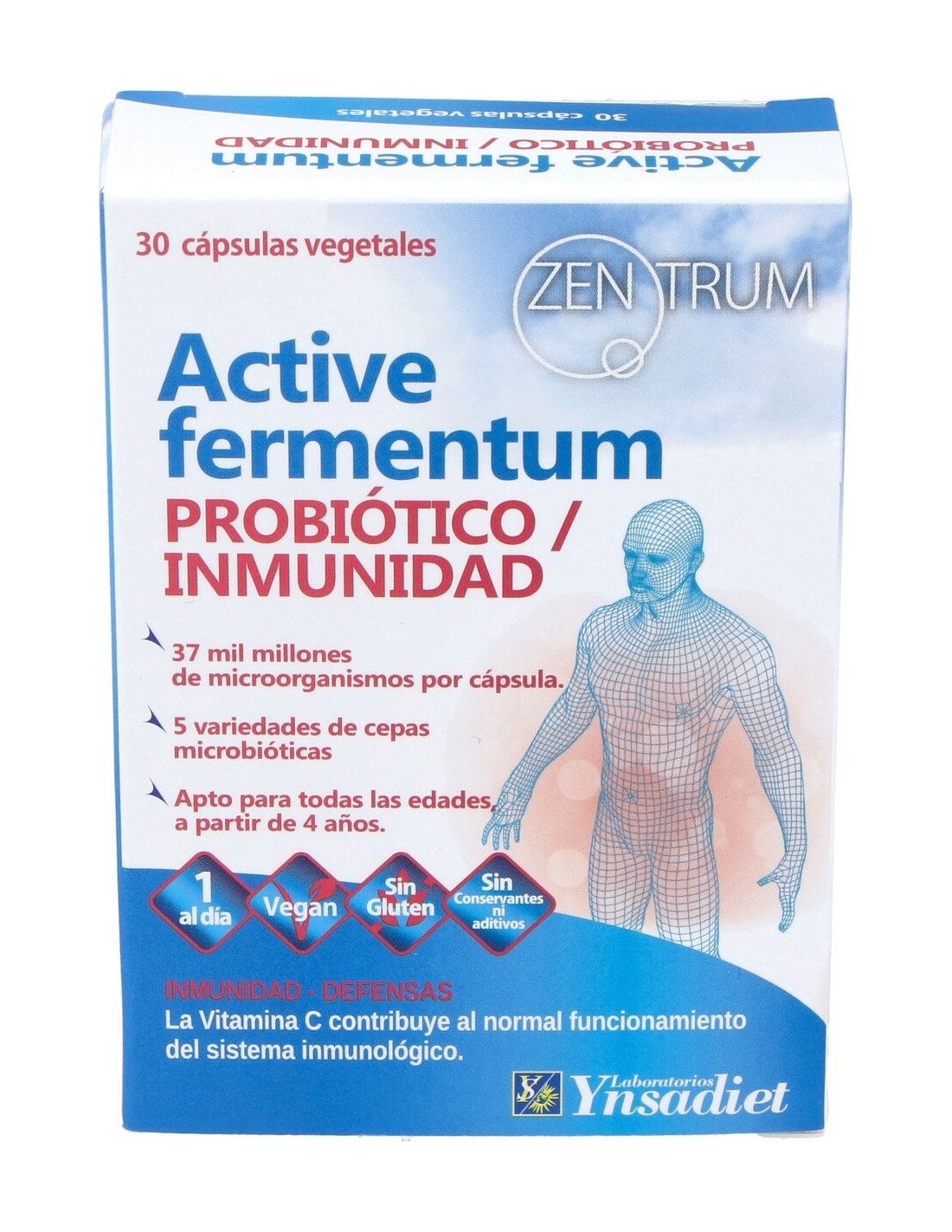 Mezcla de microorganismos 316 mg [Streptococcus thermophilus, Lactobacillus acidophilus, Bifidobacterium longum, Lactobacillus plantarum (tindalizado), Bifidobacterium lactis], Maltodextrina, Vitamina C (Ácido L-ascórbico) 16 mg , FOS (Fructooligosacáridos) 10, 8 mg. Componentes de la cubierta de la cápsula: Hidroxipropilmetilcelulosa.