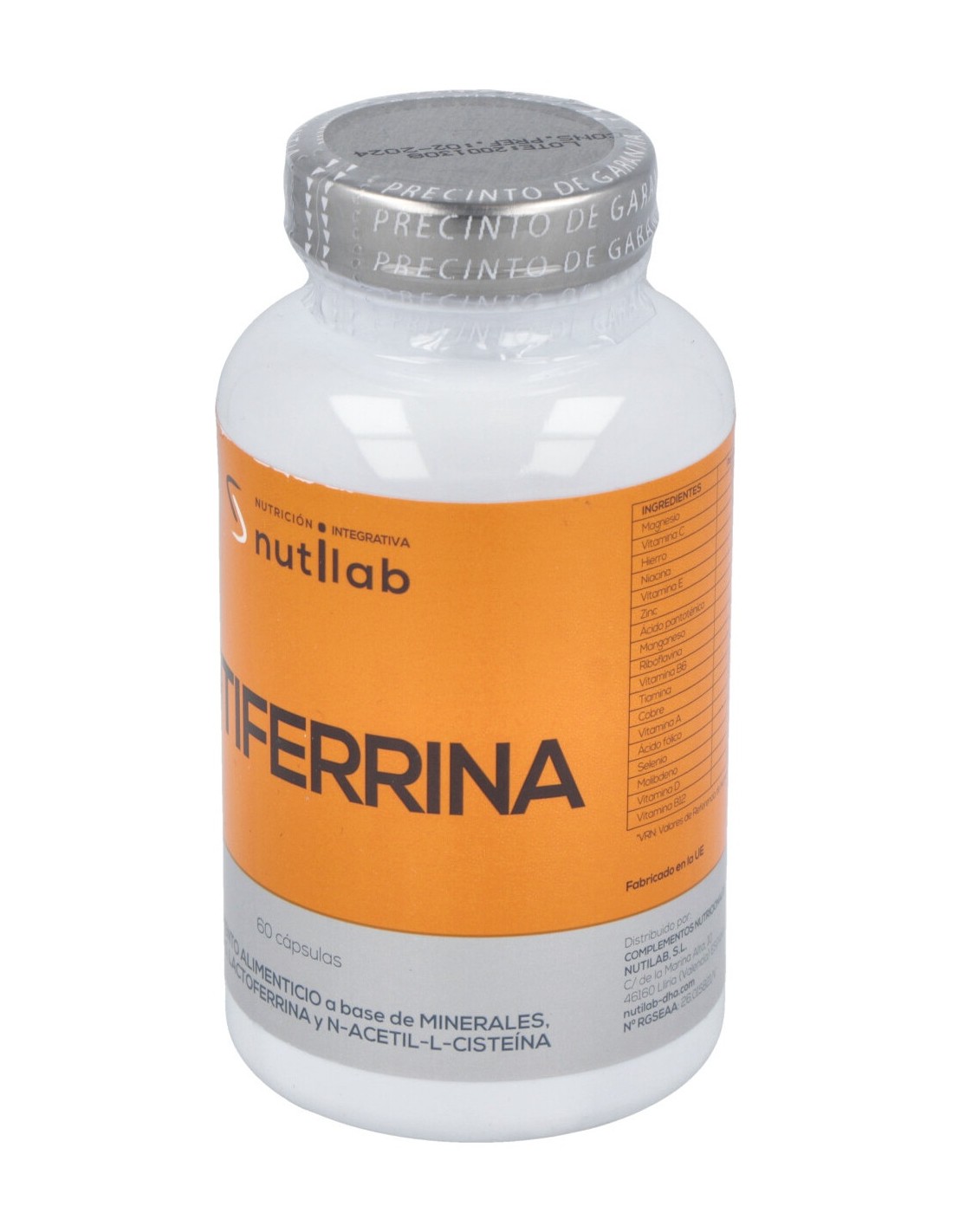 Complemento alimenticio en formato cápsula y elaborado a base de lactoferrina, N-acetil-L-cisteína, minerales y vitaminas. Con un gran aporte en hierro, está indicado para contribuir a la formación normal de los glóbulos rojos y la hemoglobina, y al transporte normal de oxígeno en el cuerpo.