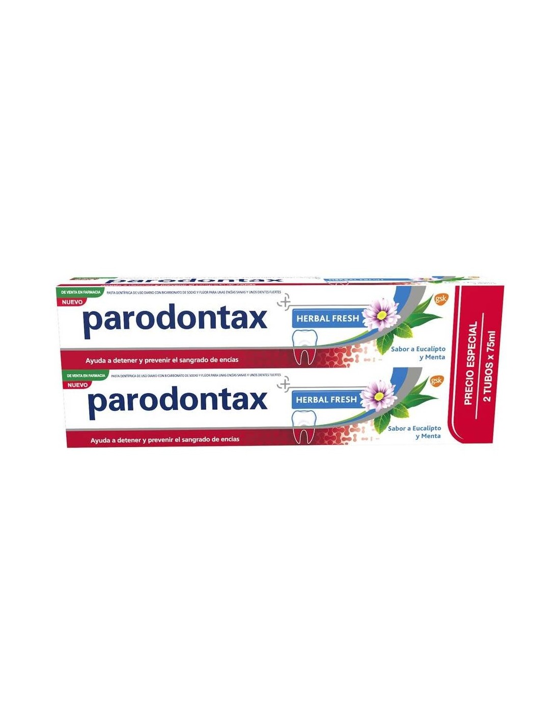 Parodontax Duplo Pasta Herbal Fresh 2x75ml es un dúo de dentífricos indicado para personas que sufren sangrado de encías, a partir de 12 años.