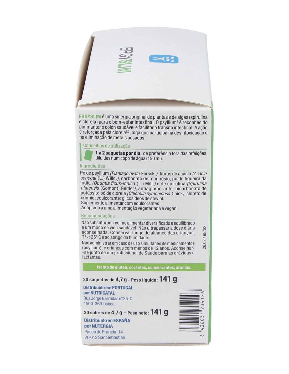Polvo de psyllium (Plantago ovata Forssk.), fibras de acacia (Acacia senegal (L.) Willd.), carbonato de magnesio, polvo de higuera chumba (Opuntia ficus-indica (L.) Mill.) y de espirulina (Spirulina platensis (Gomont), Geitler), antiaglomerante: bicarbonato de potasio: polvo de clorela (Chlorella pyrenoidosa Chick): cloruro de cromo: edulcorante: glucósidos de esteviol.