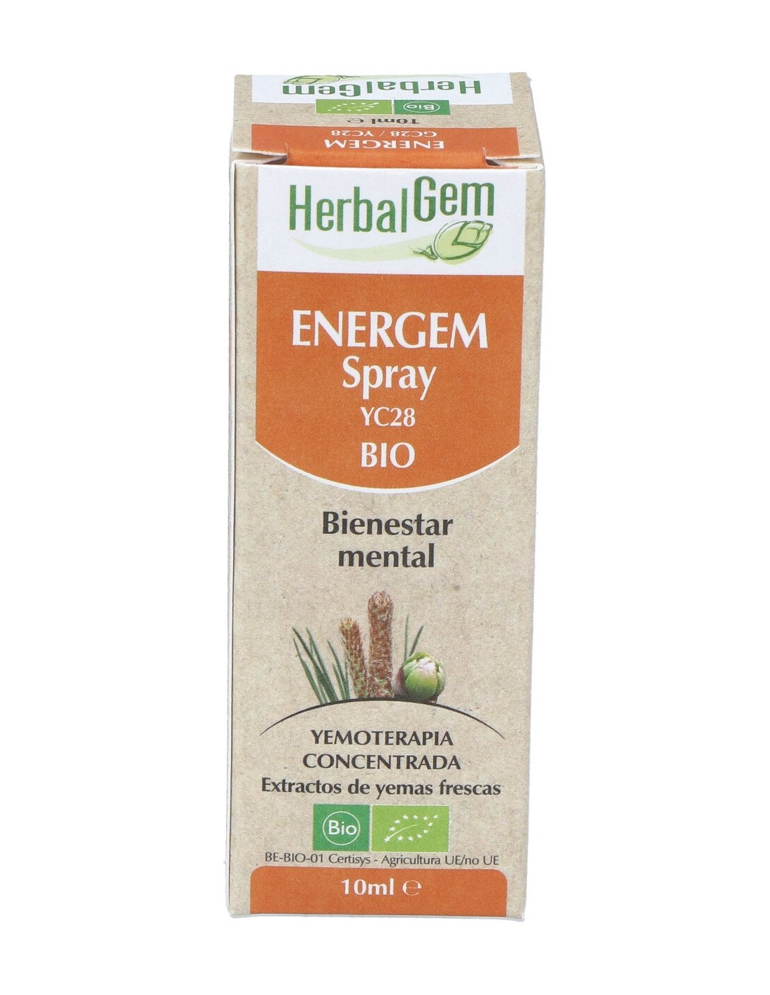 Herbalgem Energem Spray Bienestar Mental 10ml es un spray oral que ayuda a relajar cuerpo y mente. Elaborado a partir de ingredientes procedentes de la agricultura biológica, como el espino blanco, pino, valeriana, rowan sorbus y lavanda. Indicado para reducir el cansancio, el agotamiento y combatir las situaciones de estrés y la falta de energía.