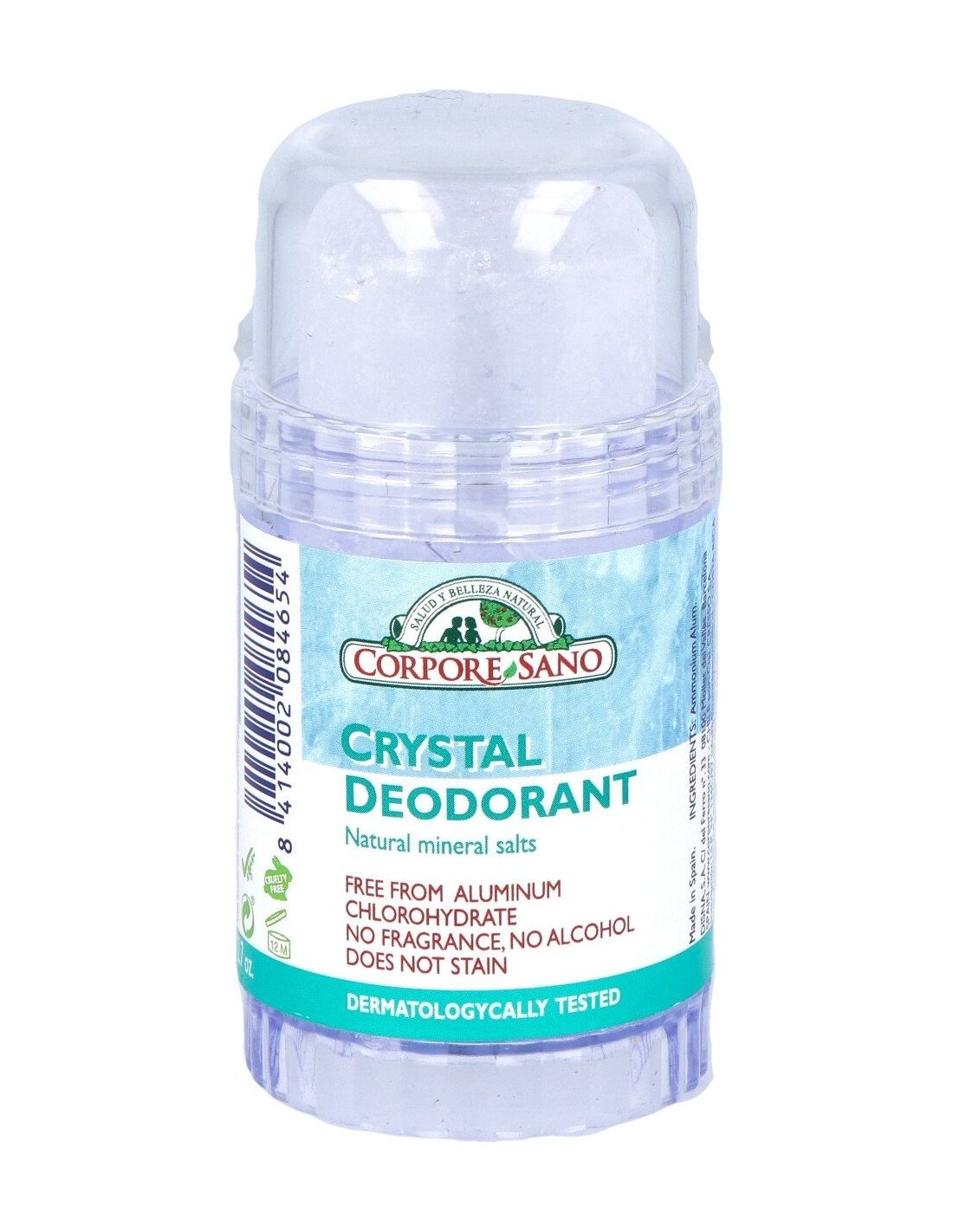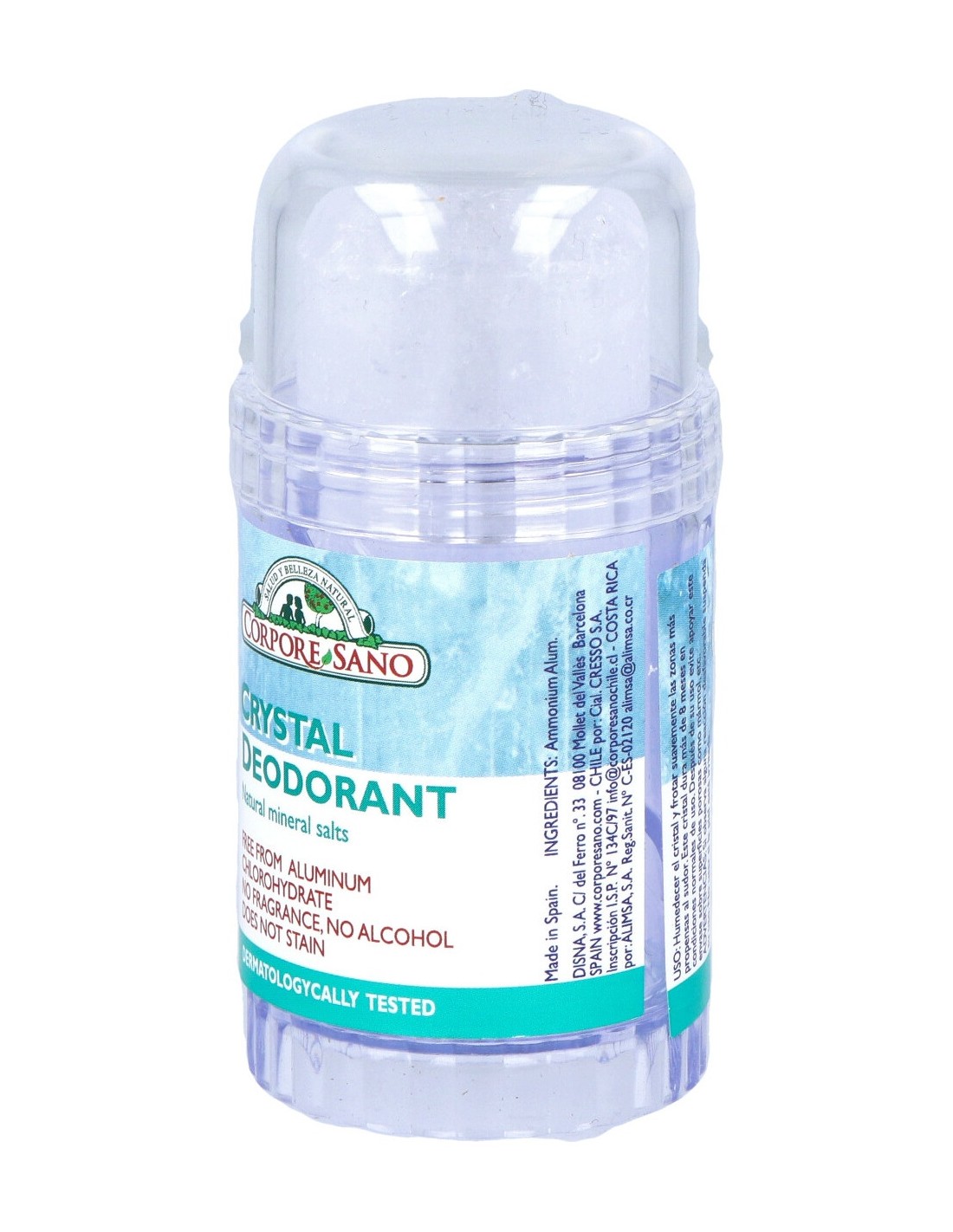 Desodorante mineral con Aloe vera, natural y no mancha. Este desodorante es poco soluble en agua y tiene propiedades astringentes sobre la piel. Su acción astringente permite disminuir la sudoración de la piel. Su carácter ácido actúa inhibiendo el desarrollo de los microorganismos que se encuentran en la piel y que son los causantes de la aparición del mal olor, por descomposición bacteriana del sudor.
