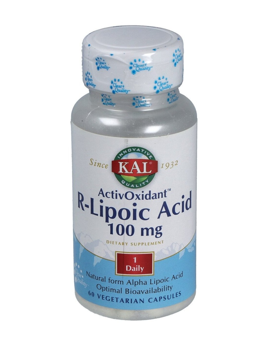 Cápsula de celulosa vegetal, ácido alfa R-lipoico,agente de carga: celulosa, antiaglomerante: estearato de magnesio , sílice.