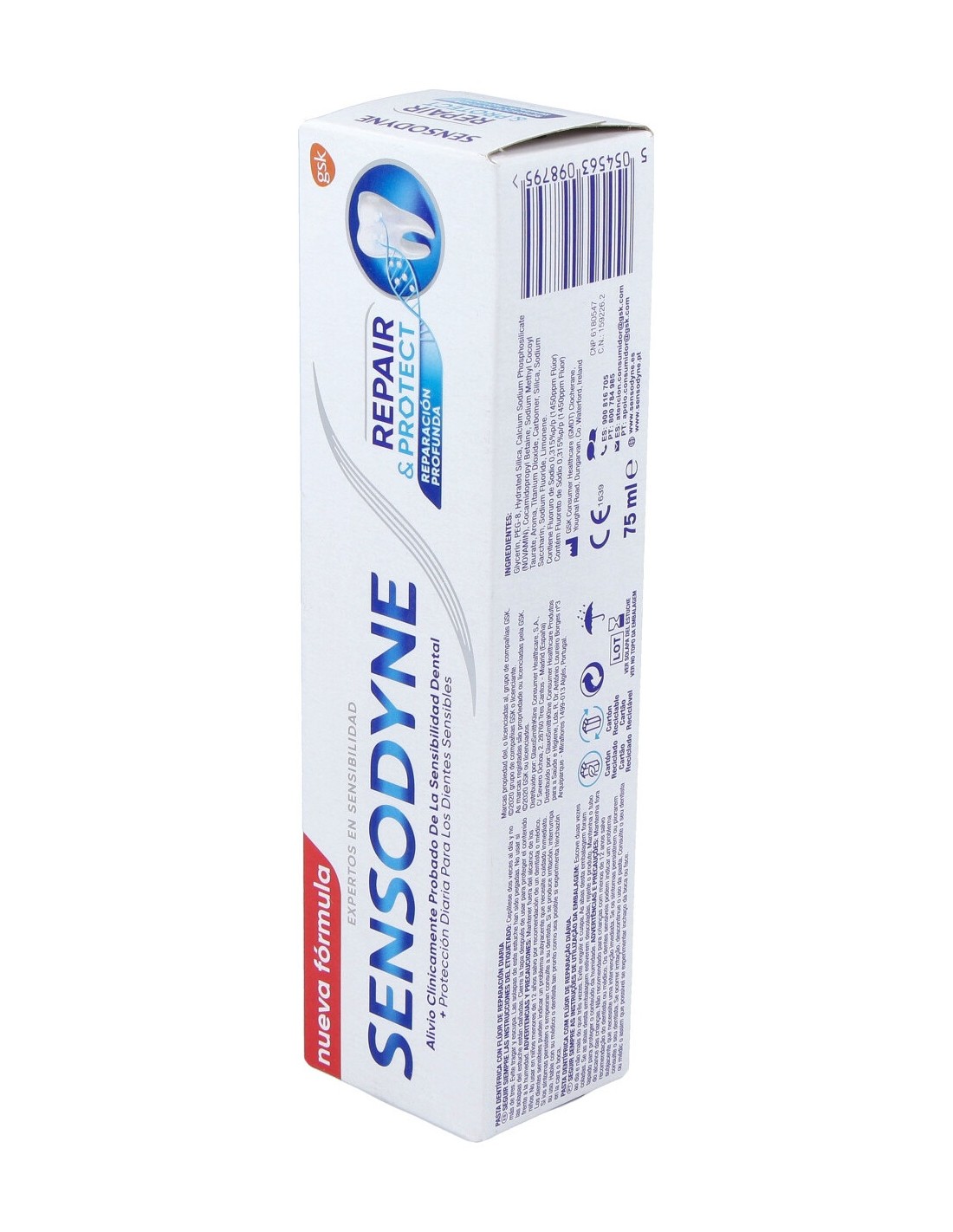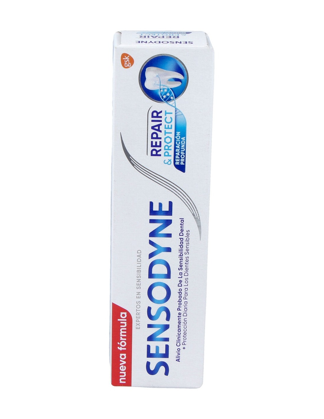 Pasta dentífrica de uso diario con NovaMin, una tecnología clínicamente probada que crea una capa mineral similar a la hidroxiapatita sobre las zonas expuestas de la dentina, reparando los dientes sensibles y aliviando el dolor de la sensibilidad dental. Además su fórmula lleva flúor, para ayudar a proteger los dientes, y tiene un refrescante sabor a menta.