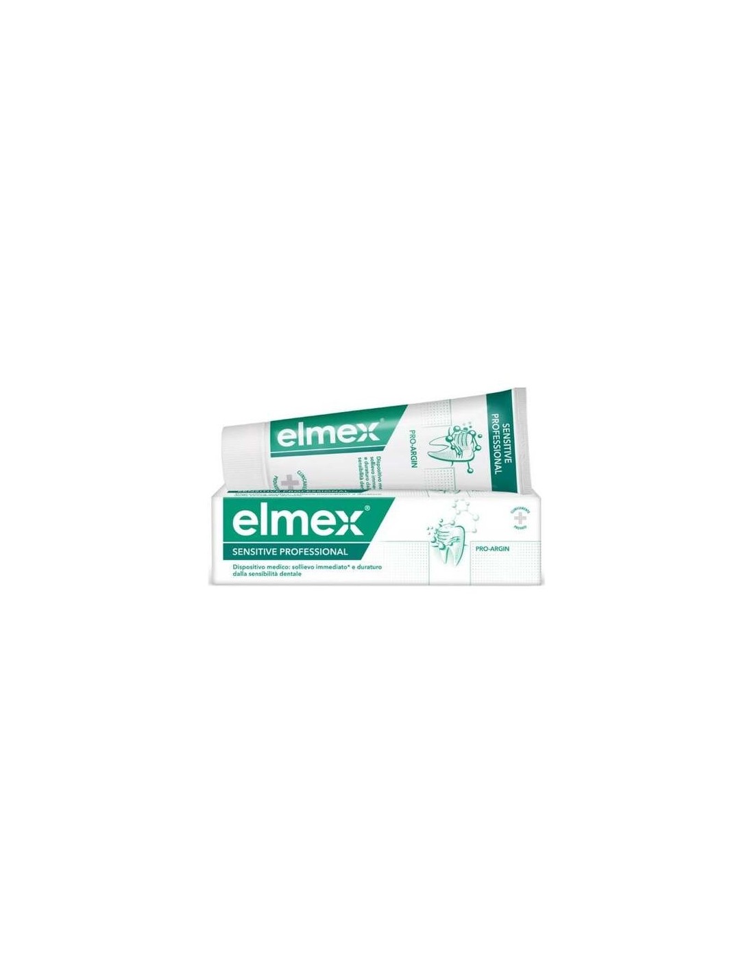 Arginina 8%, Calcium Carbonate, Aqua, Sorbitol, Sodium Lauryl Sulfate, Aroma, Sodium Monofluorophosphate (1450 ppm F°), Cellulose Gum, Sodium Bicarbonate, Tetrasodium Pyrophosphate, Sodium Saccharin, Benzyl Alcohol, Xanthan Gum, Limonene, CI 77891.