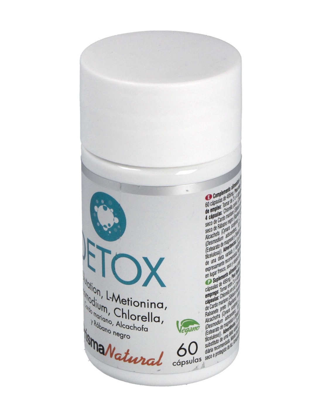 Por cápsula: Chlorella polvo: 79,05 mg L-Metionina: 79,05 mg Extracto seco de Cardo mariano: 47,43 mg Extracto seco de Rábano negro: 47,43 mg Extracto seco de Alcachofa: 39,53 mg Extracto seco de Desmodium: 39,53 mg L-Glutation: 39,53 mg