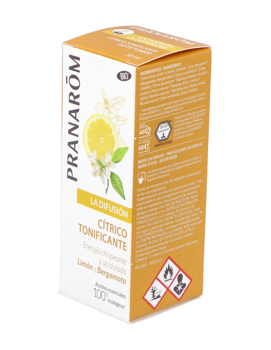 100% aceites esenciales ecológicos*: Limón, Bergamota, Lima, Naranjo amargo, Naranja dulce, Hierbabuena, Anís estrellado.