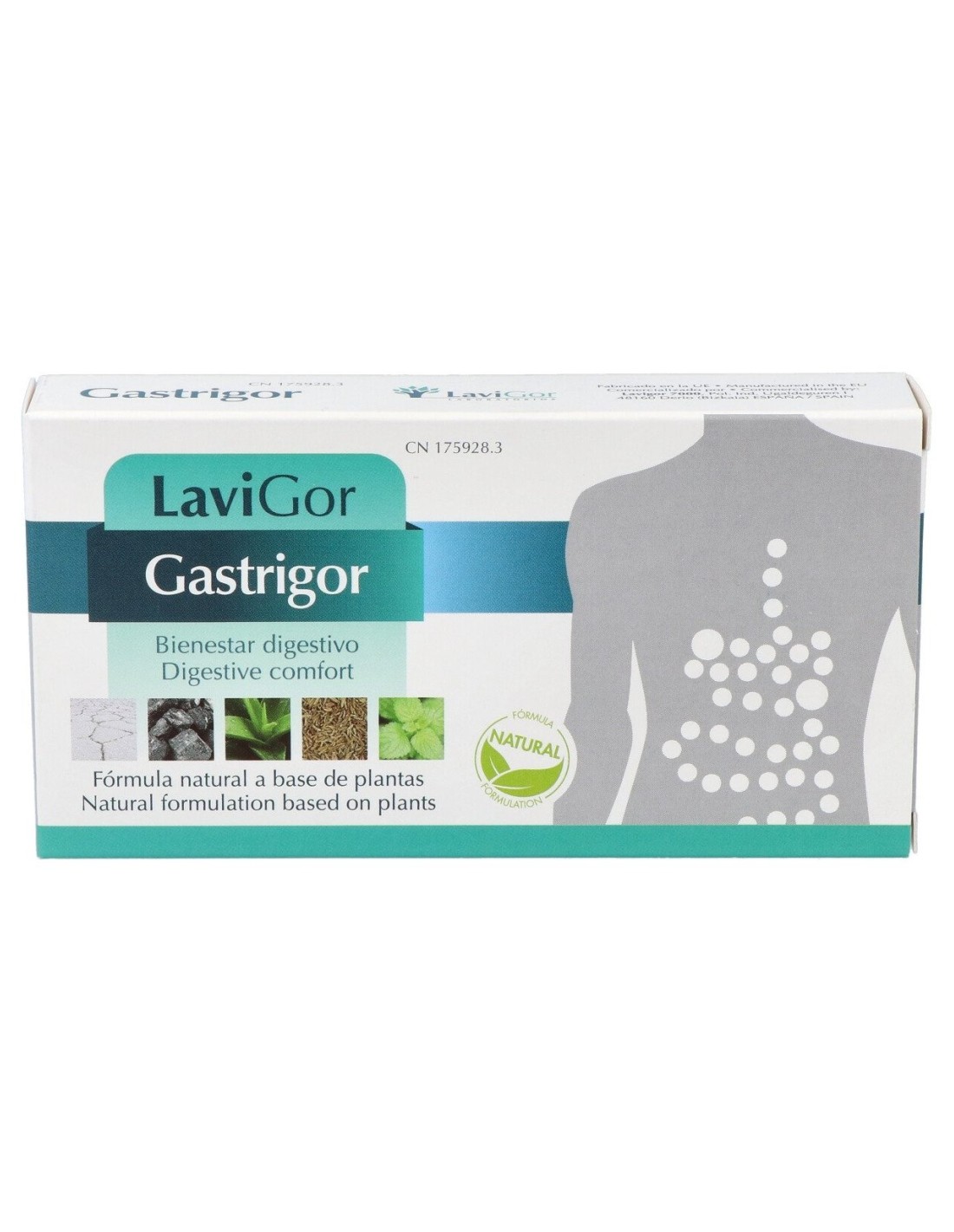 Carbonato de magnesio, 140 mg; Carbón vegetal, 100 mg; Aloe vera, 48 mg; Exto. seco de comino (Cuminum cyminum), 0,4 mg; Exto. seco de menta (Mentha x piperita), 0,4 mg