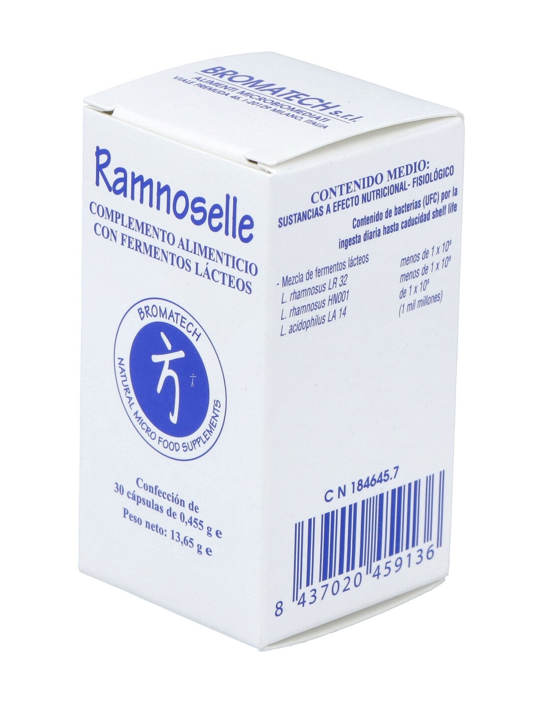 Maltodextrina de maíz, gelatina (cápsula), agente de carga: celulosa microcristalina, mezcla de fermentos lácteos (lactobacillus rhamnosus LR 32, lactobacillusrhamnosus HN001 e lactobacillus acidophillus LA 14), antiaglomerantes: sales de magnesio de los ácidos grasos, dióxido de silicio.