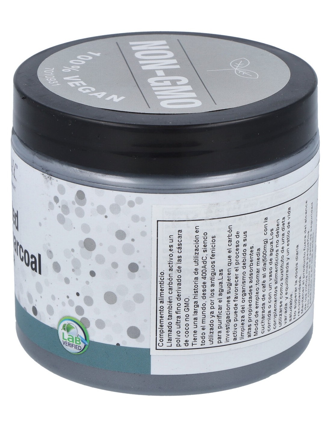 También llamado Carbón Activo, es un polvo ultra-fino derivado de la cáscara del coco, no GMO y de calidad alimentaria. Producto 100% vegano.