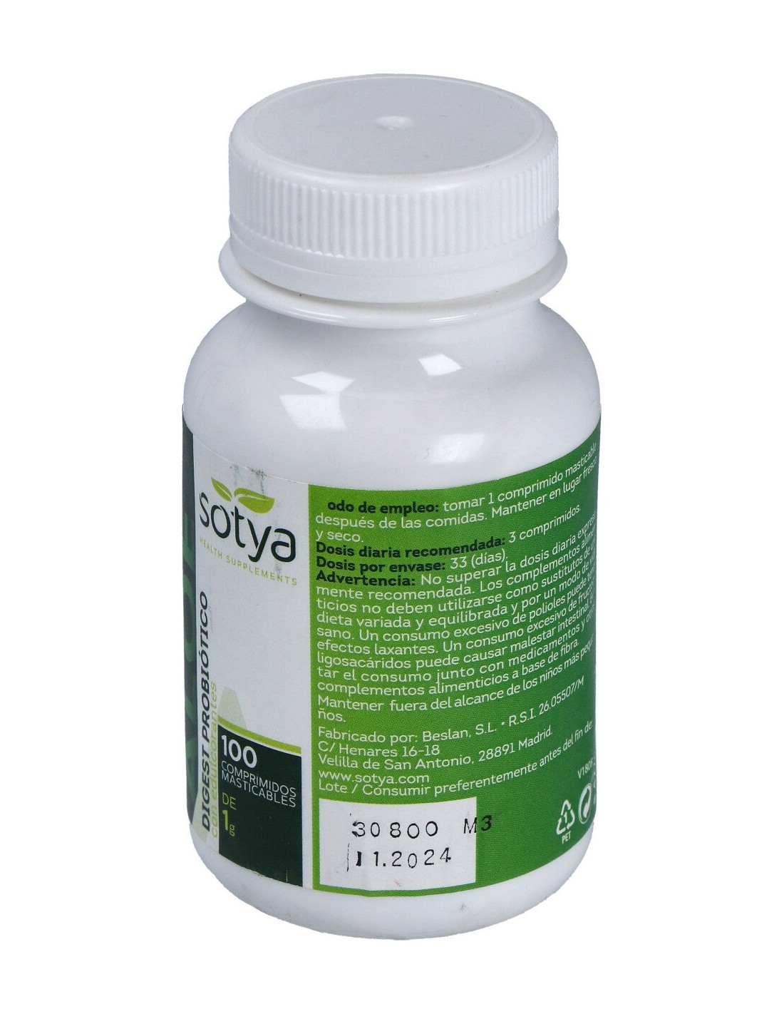 Comprimidos masticables de 1g que contienen 130mg de fructooligosácaridos, 100mg de yogurt desnatado en polvo, 50mg de extracto de manzanilla 5:1, 40mg de aloe vera extracto (equivalente a 8g de planta), 40mg de tronco de piña, 25mg de papaya, 10mg de bifidobacterias (con 600.000 células vivas/mg) y 10mg de extracto de anís 5:1.