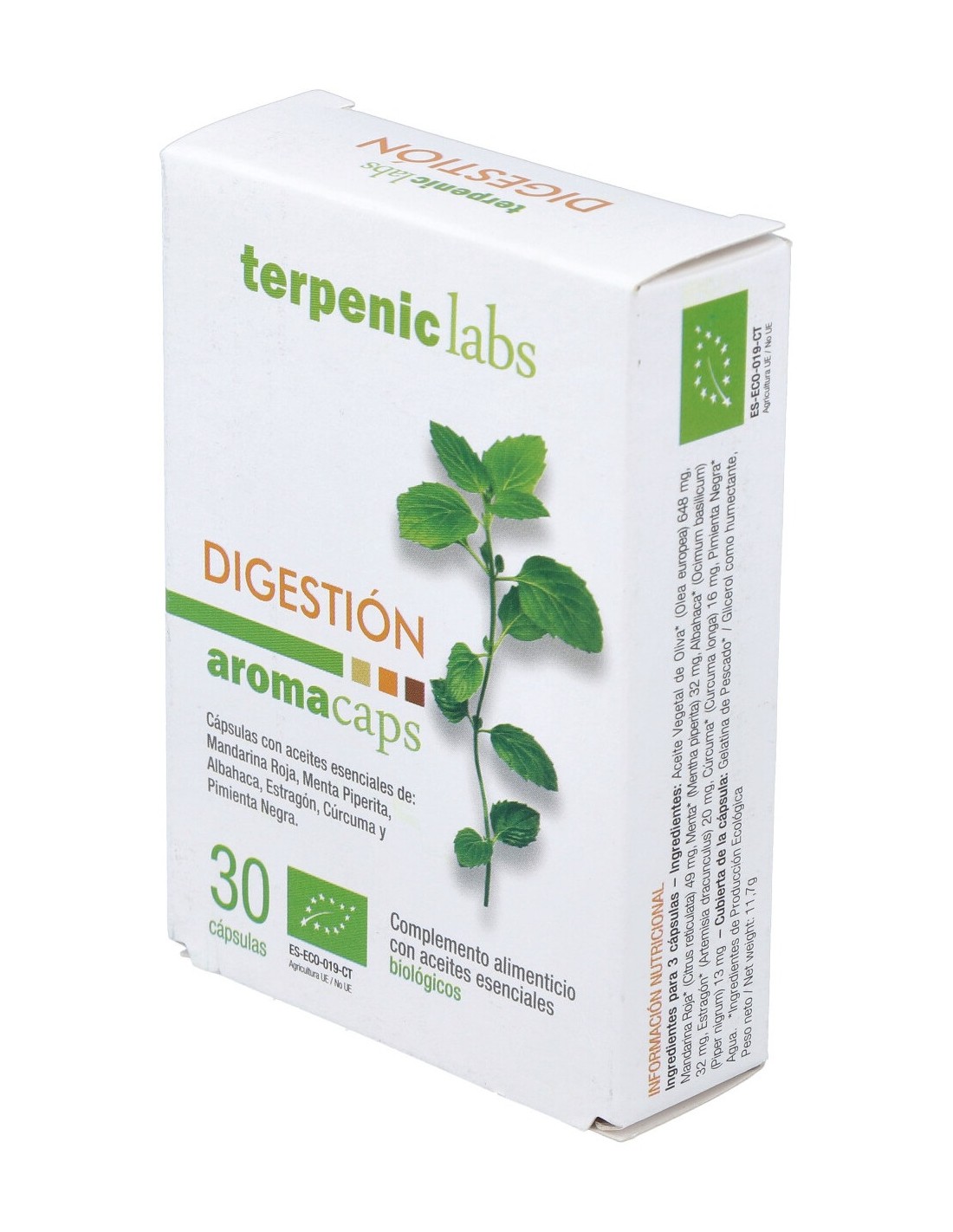 Contiene aceites esenciales como la Menta Piperita, utilizado tradicionalmente para facilitar la digestión, y Albahaca y Mandarina Roja entre otros, utilizados en preparados digestivos para calmar la hinchazón y el estreñimiento.