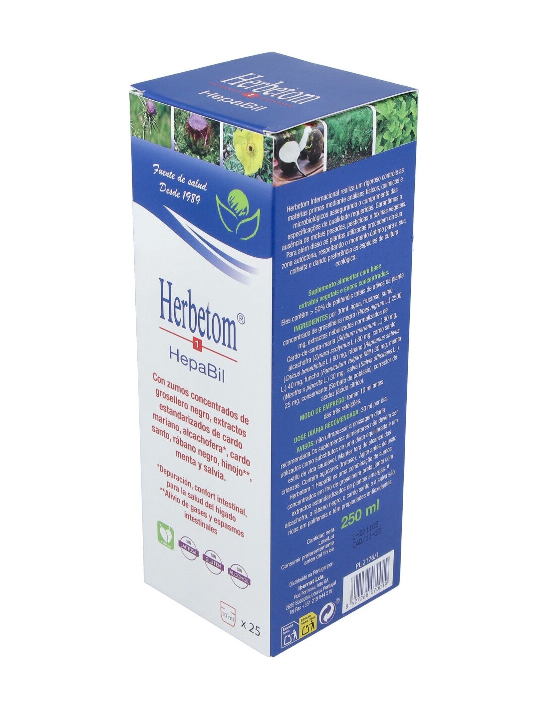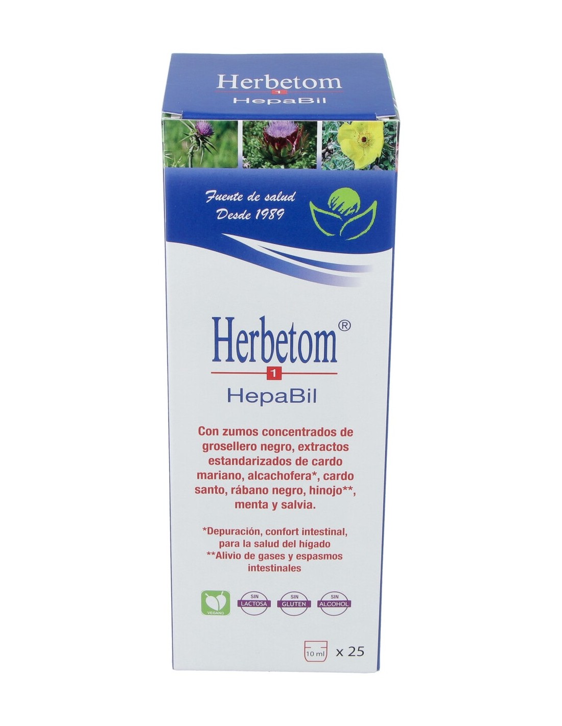 Agua, fructosa, zumo concentrado de grosellero negro (Ribes nigrum L.), extractos nebulizados estandarizados de cardo mariano (Silyibum marianum (L.) Gaertn.) 90 mg, alcachofera (Cynara scolymus L.) 80 mg, cardo santo (Cnicus benedictus L.) 60 mg, rábano negro (Raphanus sativus L.) 40 mg, hinojo (Foeniculum vulgare Miller) 30 mg, menta (Mentha x piperita L.) 30 mg y salvia (Salvia officinalis L.) 25 mg, conservante (sorbato potásico).