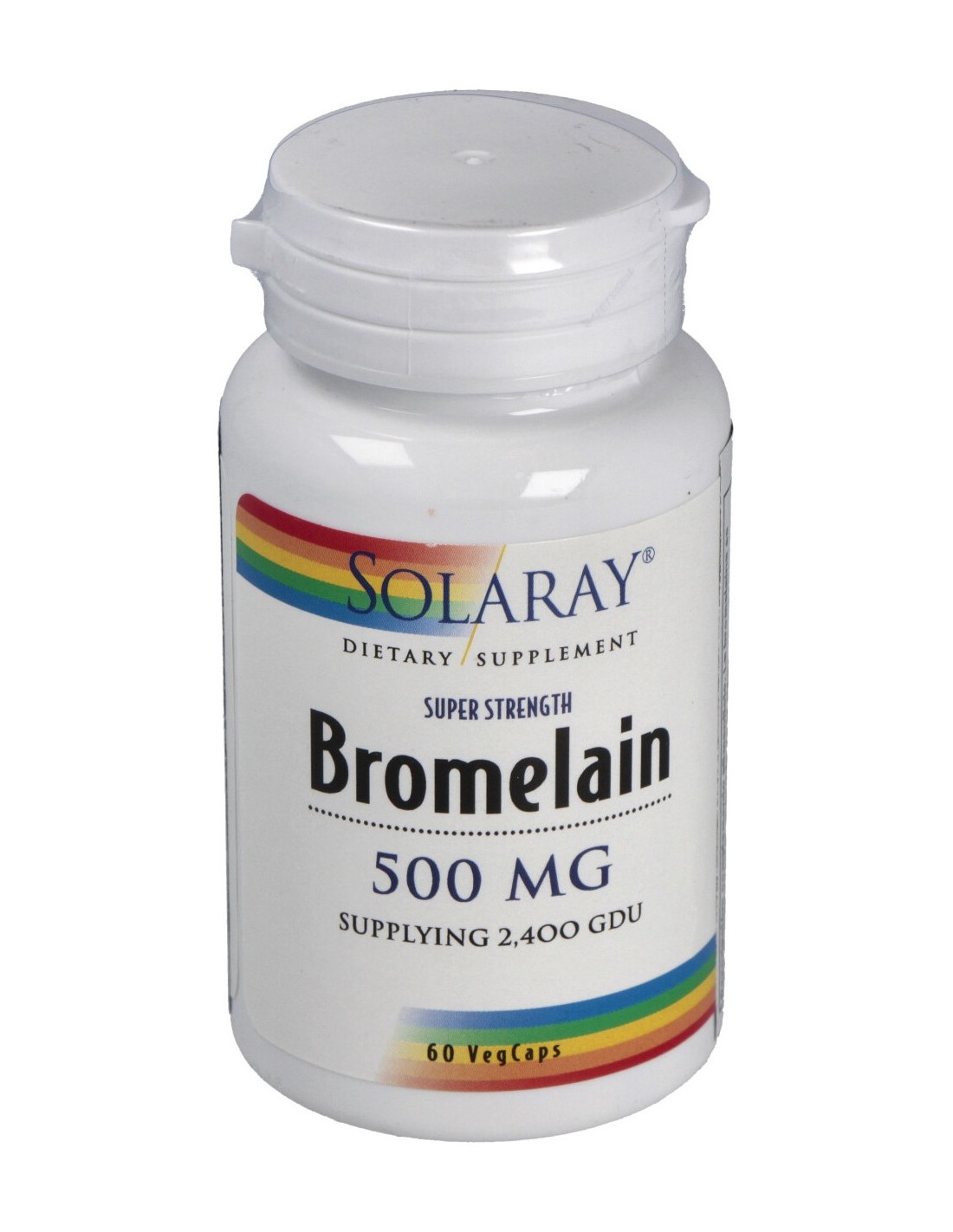 Bromelaína (del tallo de la piña), cápsula: gelatina, antiaglomerante: sílice, celulosa y estearato de magnesio.