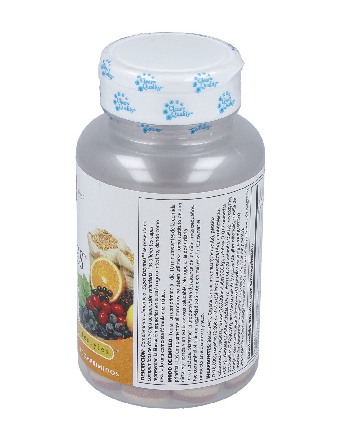 Incluye 11 enzimas diferentes para el apoyo de la acción enzimática, en combinación con 7 plantas digestivas para lograr un poderoso efecto sinérgico. Este suplemento no sólo se caracteriza por su composición, su comprimido de liberación prolongada bicapa posee doble actividad. Una capa libera su contenido en el estómago, mientras que la segunda capa se libera en el intestino.