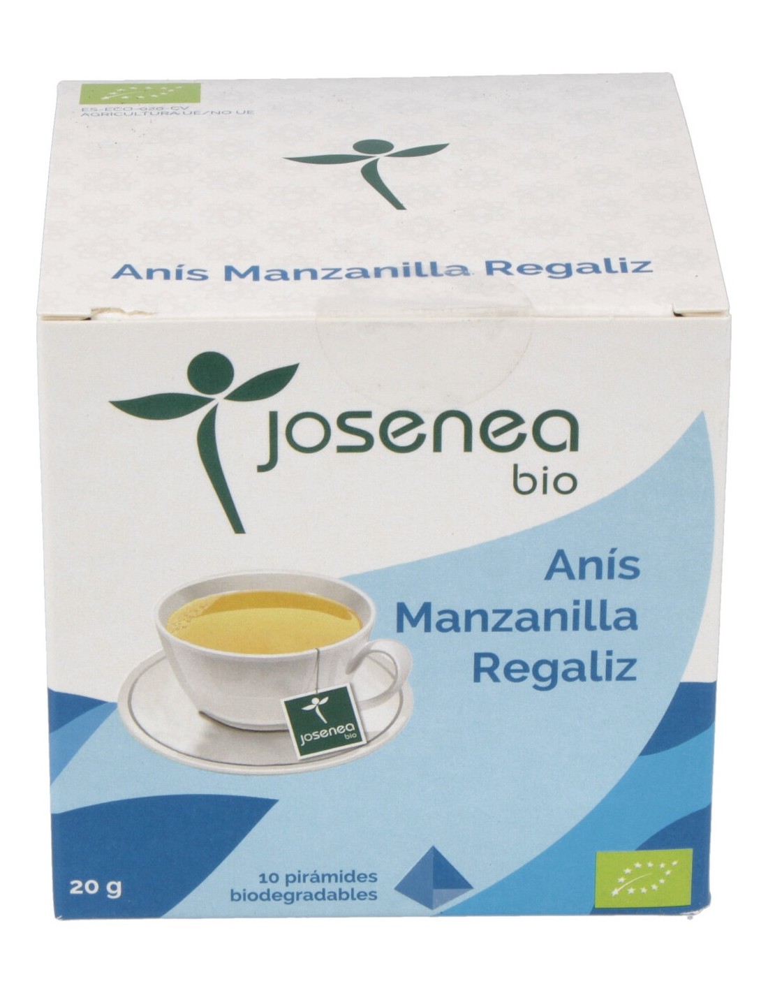 Anís* (Pimpinella anisum) semilla, manzanilla* (Matricaria chamomilla) flor, regaliz* (Glycyrrhiza glabra) raíz.