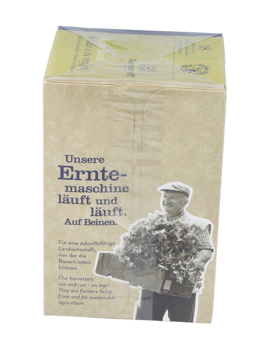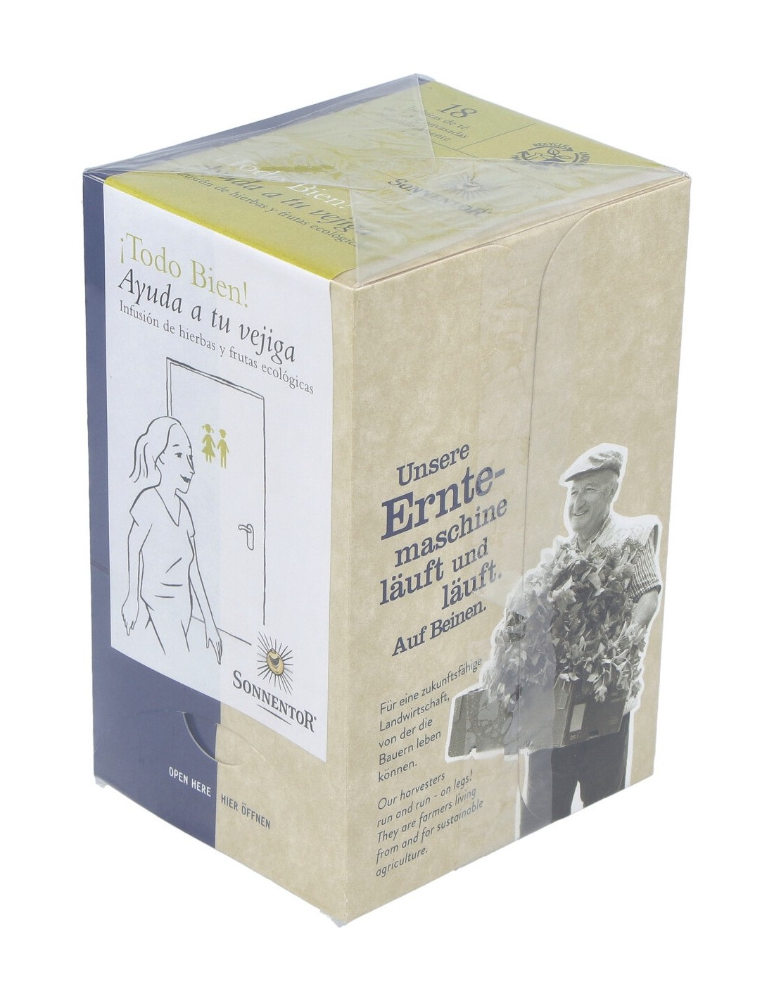 Ingredientes ecológicos: Hojas de abedul, manzanilla, flores de saúco, arándanos, ortiga, escaramujo, arándano rojo, bayas de enebro.