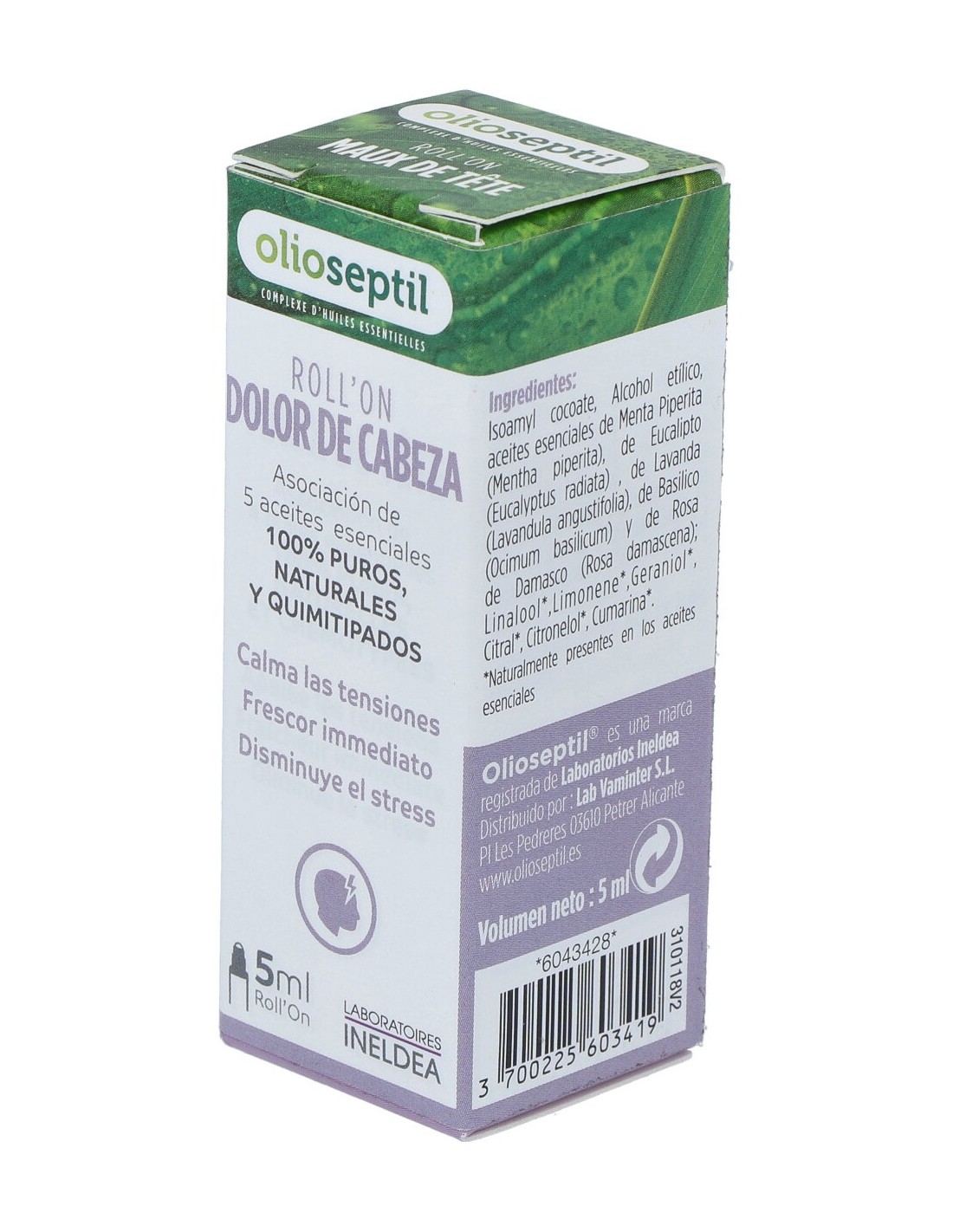Los aceites esenciales de menta y eucalipto , combinados con el masaje de las sienes con el rodillo, ayudan a calmar las tensiones y dan una sensación inmediata de frescura.