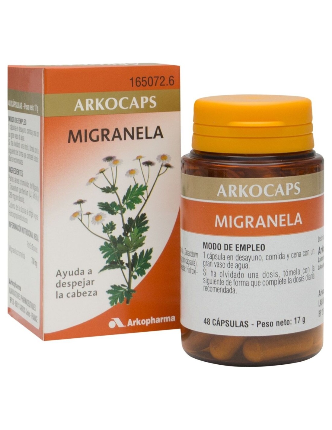 Arkocapsulas Migranela es una solución ideal para prevenir o suavizar la aparición de jaquecas o migrañas. Gracias a su formulación plenamente natural, a base de migranela, una planta que ha sido utilizada tradicionalmente como remedio específico de las jaquecas, este producto te relajará y mejorará tu bienestar.