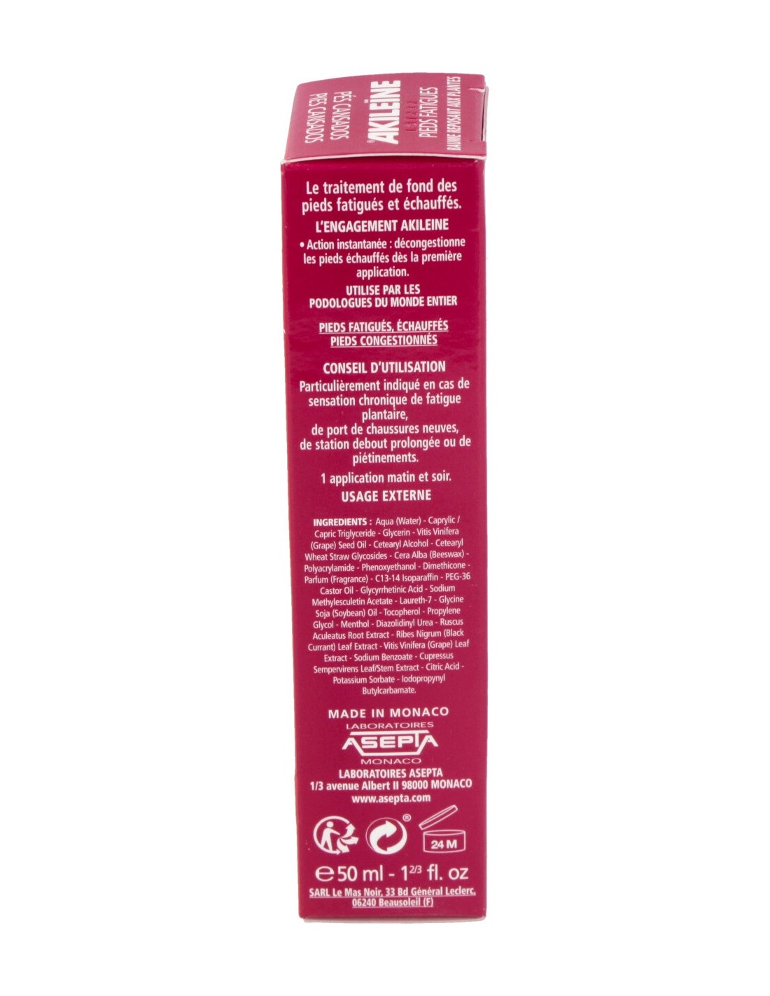 Aqua (Water), Caprylic/Capric Triglycéride, Glycerin, Vitis Vinifera (Grape) Seed Oil, Cetearyl Alcohol, Cetearyl Wheat Straw Glycosides, Cera Alba (Beeswax), Polyacrylamide, Phenoxyethanol, Dimethicone, Parfum (Fragance), C13-14 Isoparaffin, PEG-36 Castor Oil, Glycyrrhetinic Acid, Sodium Methylesculetin Acetate, Laureth-7, Glycine Soja (Soybean) Oil, Tocopherol, Propylene Glycol, Menthol, Diazolidinyl Urea, Ruscus Aculeatus Root Extract, Ribes Nigrum (Black Currant) Leaf Extract, Vitis Vinifera (Grape) Leaf Extract, Sodium Benzoate, Cupressus Sempervirens Leaf/Stem Extract, Citric Acid, Potassium Sorbate, Iodopropynyl Butylcarbamate.