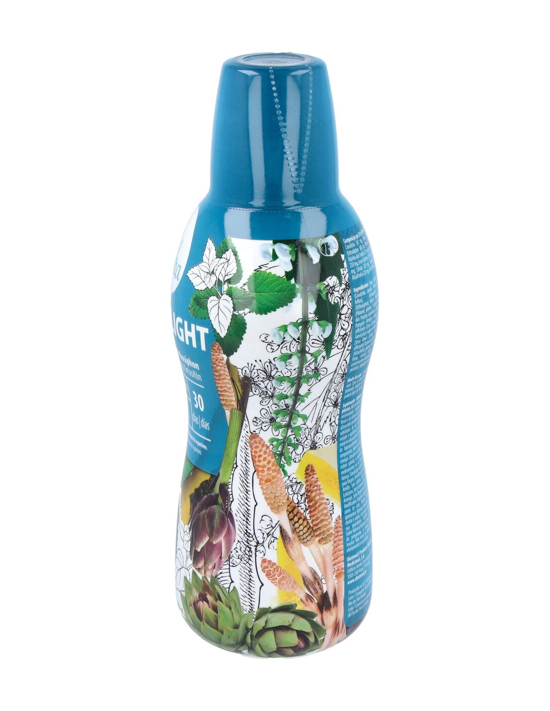 Agua, Equisetum arvense L. (Cola de Caballo: tallos), Betula alba (Abedul: hojas), Orthosiphon stamineus (Ortosifón: hojas), Hieracium pilosella (Vellosilla: planta), Spiraea ulmaria (Reina de los Prados: sumidades floridas), Rhamnus frangula (Frángula: corteza), Melissa officinalis (Melisa: hojas y tallos), Foeniculum vulgare Miller (Hinojo: planta), Citrus limon (Limón: corteza), Taraxacum officinale (Diente de León: raíz), Cynara scolymus (Alcachofa: planta), aroma de Lima-Limón, conservadores: benzoato sódico, sorbato de potasio, corrector de acidez: ácido cítrico.