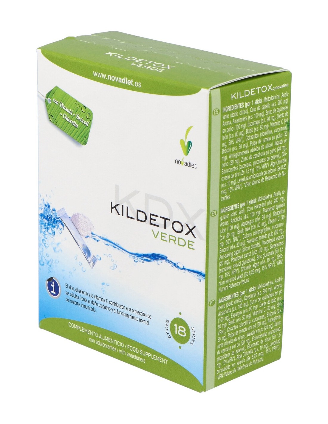 Kildetox Verde depurativo 18 sticks es un complemento alimenticio detoxificador del hígado, antioxidante y adelgazante. Está formulado a base de extractos vegetales especialmente recomendados como depurativos y diuréticos: