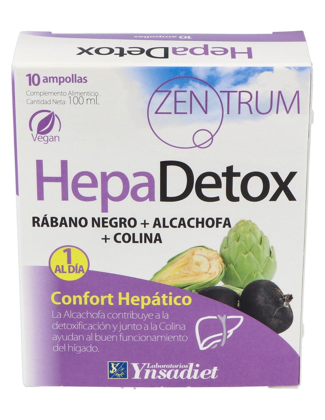 Por su contenido en Alcachofa, Rábano Negro y Colina, es un complemento alimenticio destinado a favorecer la detoxificación del hígado.