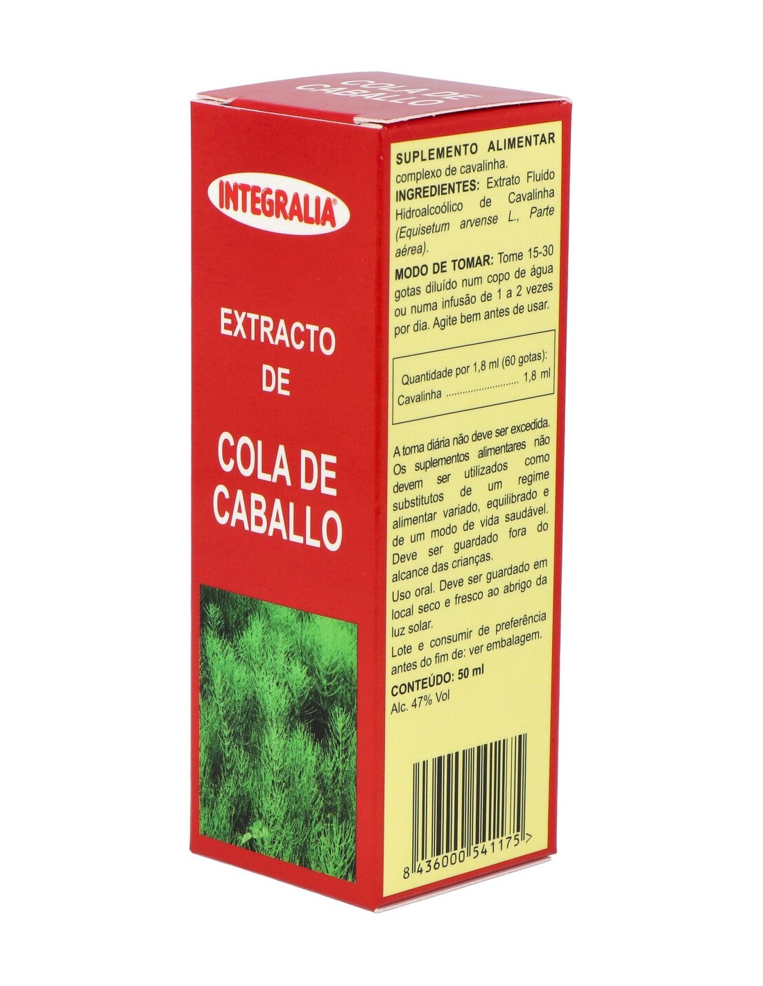 La cola de caballo es una planta rica en sales minerales (silicio, potasio, fósforo, magnesio, calcio,...) y flavonoides. Entre sus propiedades tradicionales, destaca su acción diurética (que ayuda a disminuir la retención de líquidos) y remineralizante. Además, también tiene propiedades antiinflamatorias y antioxidantes.