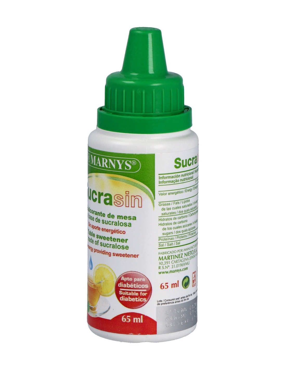 Edulcorante de mesa sin aporte energético, obtenido a partir del azúcar. Apto para diabéticos. Endulza los alimentos con unas pocas gotas y además incorpora la ventaja de que sensorialmente la sucralosa no tiene el regusto amargo atribuido a algunos otros edulcorantes no nutritivos.