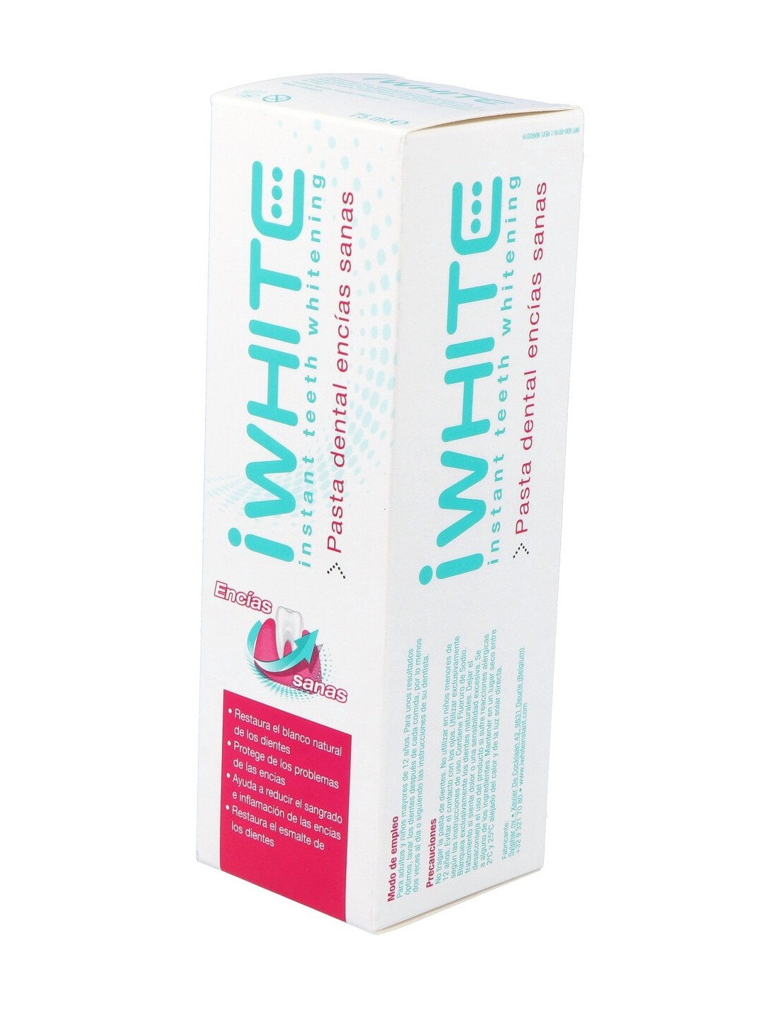 "Iwhite pasta dental encías es un dentífrico que te ayudará a blanquear de forma natural los dientes, a la vez que protegerás las encías. Su fórmula rica en flúor, logrará remineralizar los dientes y proteger tanto el esmalte como las encías.