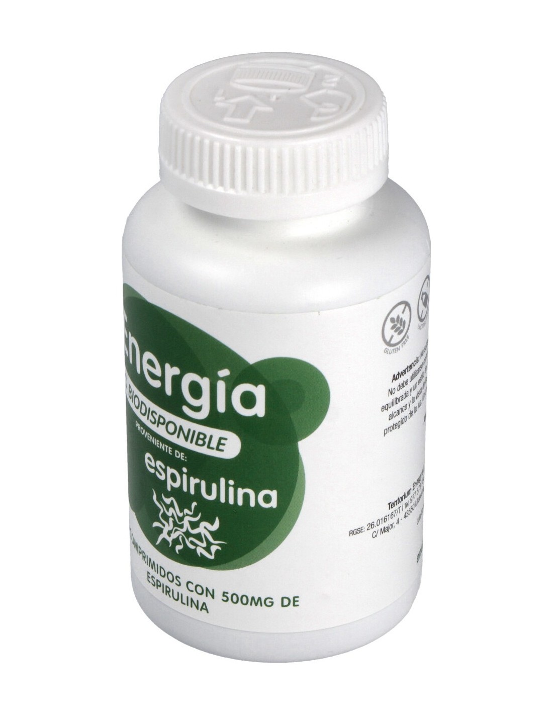 Espirulina (alga Spirulina platensis), humectante (sorbitol), agente de carga (celulosa microcristalina), estabilizador (fosfato tricálcico), antiaglomerantes (estearato de magnesio y dióxido de silicio).