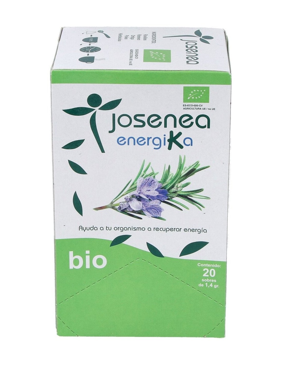 Pensando en una alimentación sana y natural, Josenea ha creado Ekosana Energika, una infusión hecha a base de rooibos, romero, ortiga, hierbaluisa y poleo, que ayuda a recuperar la energía.