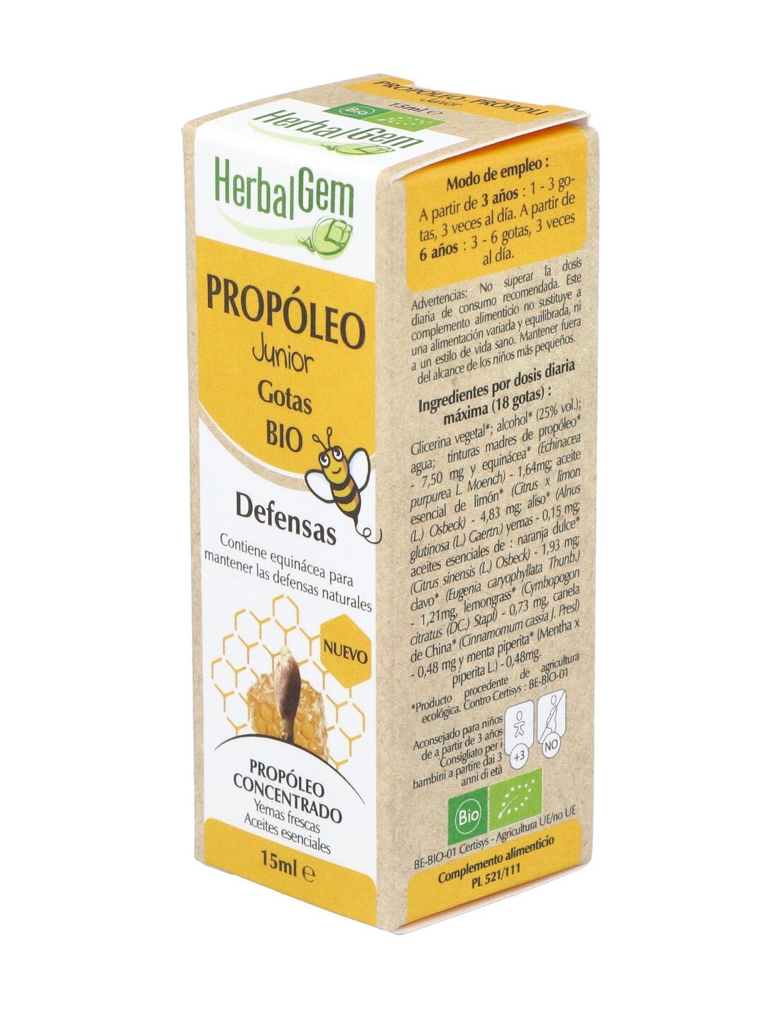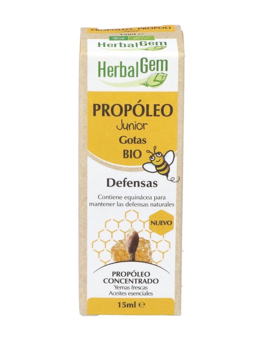 Herbalgem Propóleo Junior Jarabe Bio 15ml es un jarabe infantil elaborado a base de un concentrado de própolis, que combinado con su contenido en énula, equinácea y saúco ayuda a proteger y reforzar las vías respiratorias y las defensas naturales del organismo.