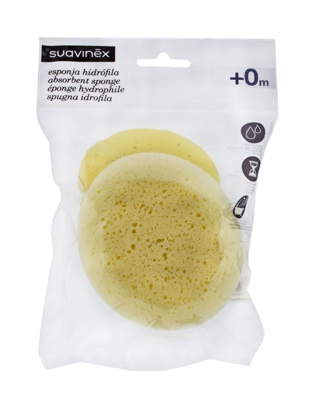 Suavinex® esponja hidrófila está especialmente diseñada para cuidar las pieles fragiles de los recién nacidos ya que tienen una piel 40% a 60% más delgada, lo que hace que sea más permeable a productos utilizados para su higiene. Esta esponja es uno de los accesorios para bebés indicado para el cuidado durante el baño, por su tamaño y textura. Puede usarse diariamente y tiene gran capacidad de absorción, similar a la de una esponja natural, aunque tiene una duración mayor.
