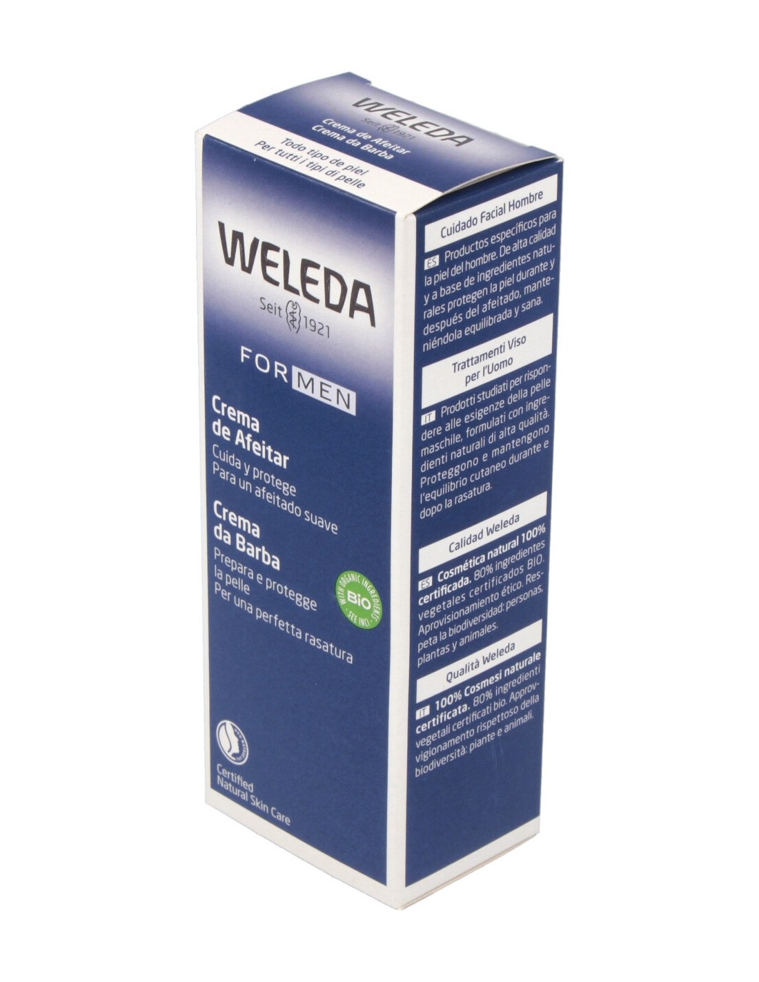 Weleda Men crema de afeitar es una crema de afeitar fina y untuosa que te ayuda en un afeitado suave y apurado. Su fórmula con leche de cabra, leche de almendra y extractos de pensamiento silvestre bio hidratan y preparan la piel para el afeitado siendo siendo beneficiosa para las pieles más sensibles.