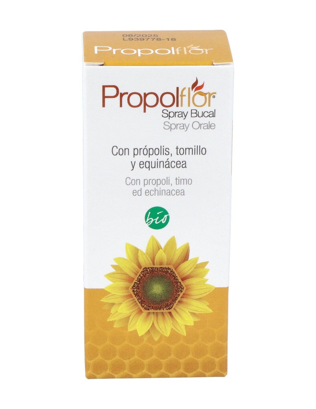 Spray bucal para el bienestar de la garganta elaborado con extractos de própolis, miel y extractos de plantas.