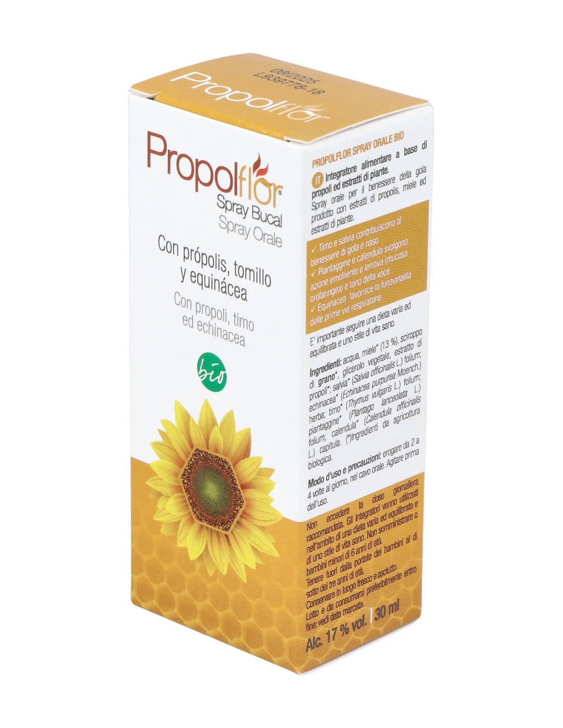 Agua, miel* (13 %), jarabe de trigo*, glicerol vegetal, extractos de propóleo*: salvia* (Salvia officinalis L.): equinácea* (Echinacea purpurea Moench.): tomillo* (Thymus vulgaris L.): llantén* (Plantago lanceolata L.): caléndula* (Calendula officinalis L.).