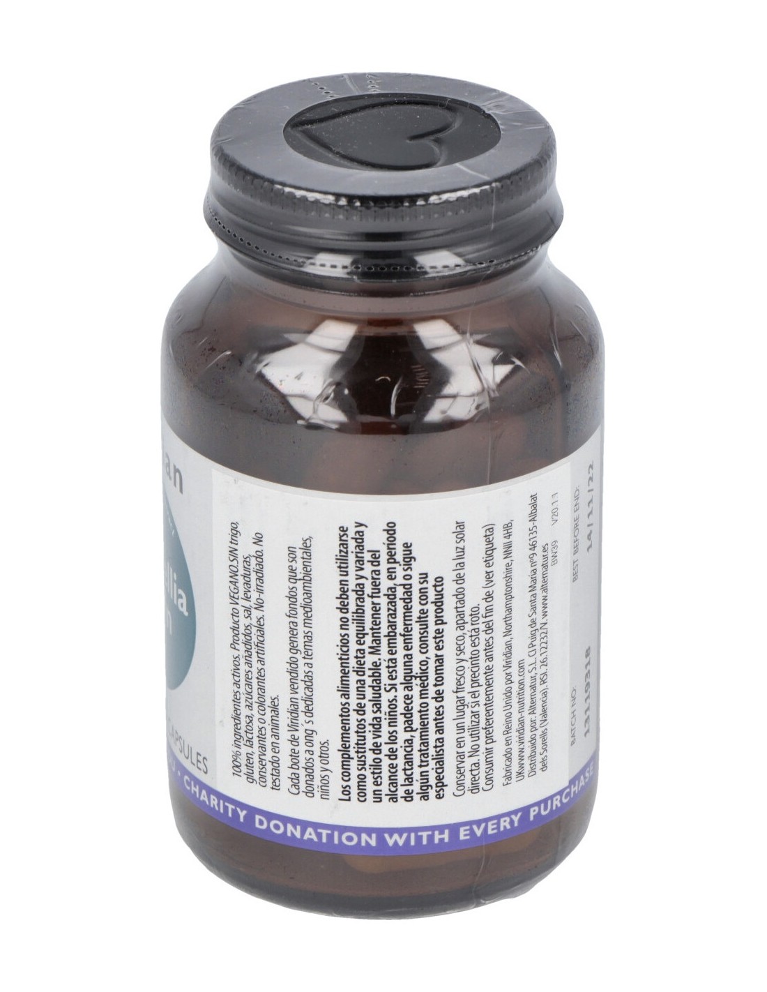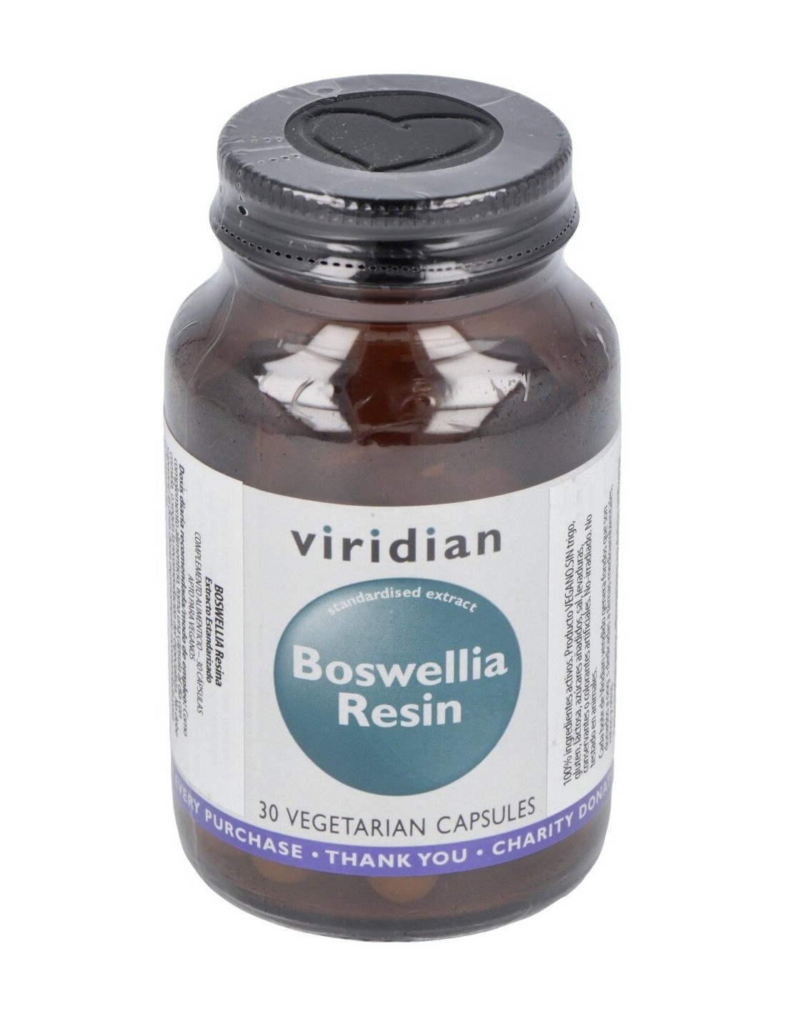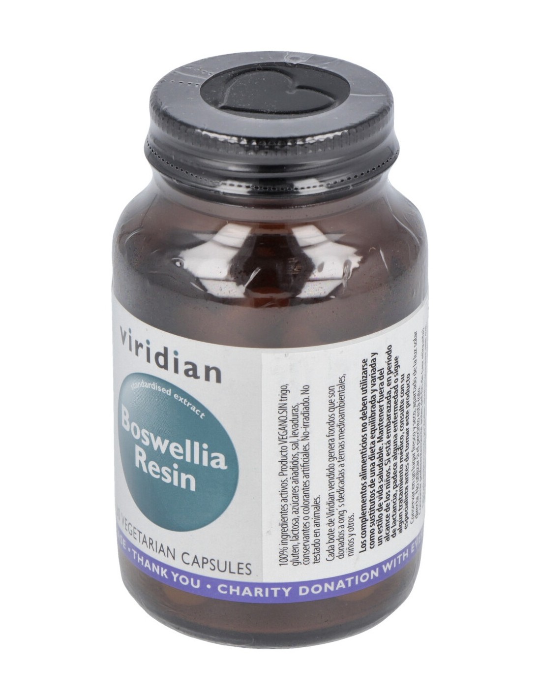 Viridian Boswellia Resina Extracto 30caps complemento alimenticio en formato cápsula, y formulado a base de boswellia procedente de la agricultura biológica y originaria de la india, que está indicado para ayudar en la mejora del confort articular. contiene resina de goma de boswellia, el cual es un ingrediente utilizado de manera tradicional por los practicantes de ayurveda, consiguen tratar condiciones como úlceras crónicas, huesos, dolor, inflamación, enfermedades reumáticas y nerviosas, trastornos del tracto urinario, enfermedades de la piel, amenorrea, dismenorrea, dolor en los pezones, tiña, ictericia, diarrea, disentería, dispepsia y hemorroides.