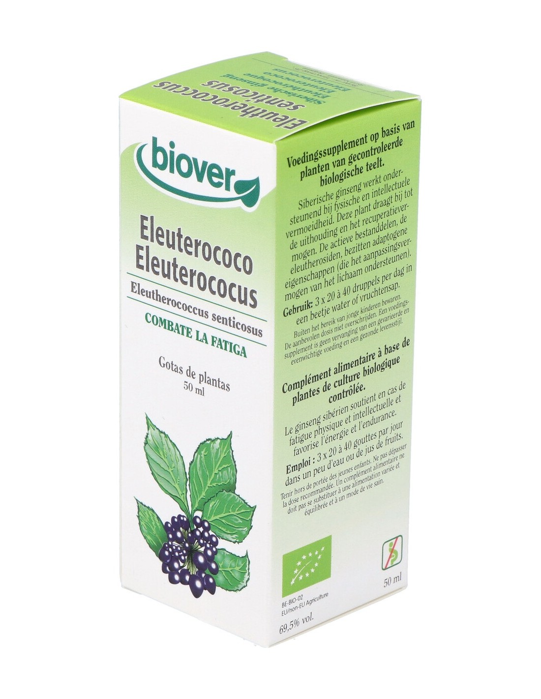 Eleutherococcus senticosus extracto hidroalcohólico 100% (alcohol*, eleuterococo* (raíz), agua).