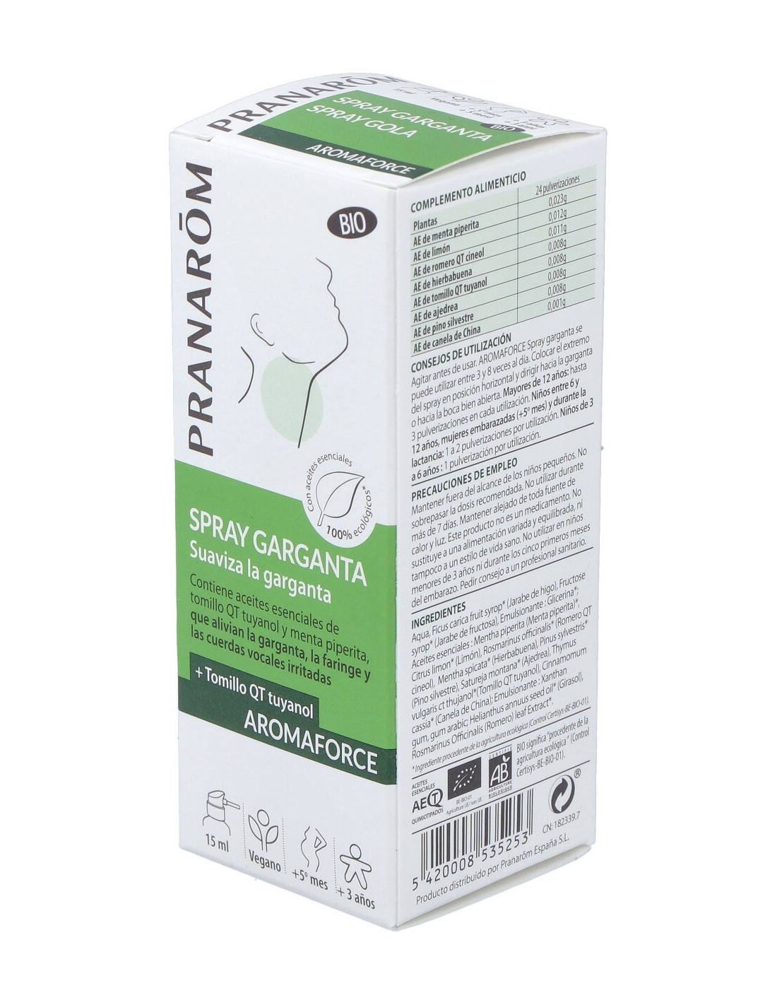 Se puede utilizar entre 3 y 8 veces al día, colocar la punta del spray en posición horizontal y dirigir hacia la garganta o hacia la boca bien abierta.