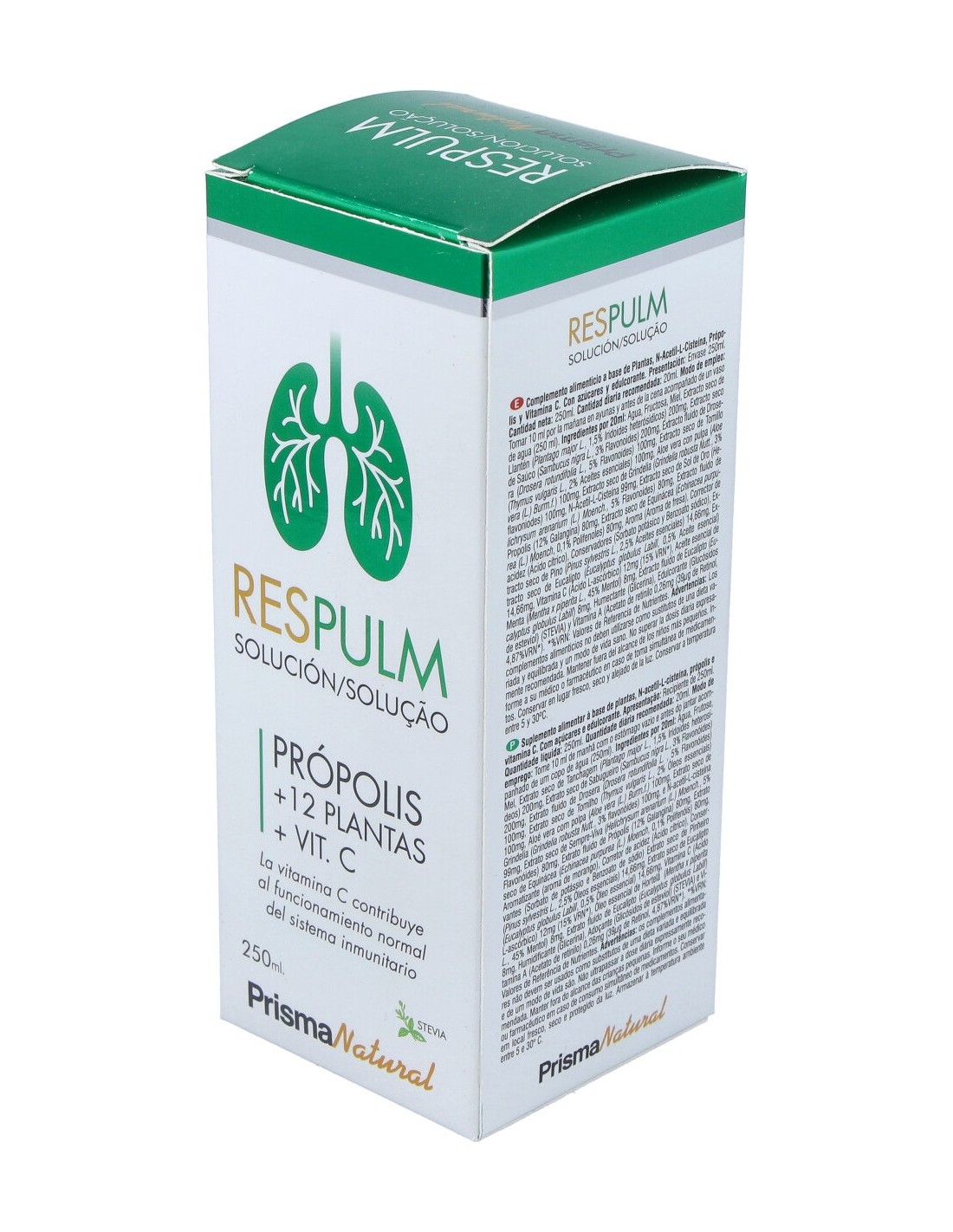 Fructosa 7 g, miel 500 mg, saúco (sambucus nigra l.) 200 mg, llantén (plantago major l.) 200 mg, n-acetil-cisteína 150 mg, aloe (aloe vera (l.) burm. f.) 100 mg, grindelia (grindelia robusta nutt.) 100 mg, tomillo (thymus vulgaris l.) 100 mg, drosera (drosera rotundifolial.) 100 mg, sol de oro (helichrysum arenarium (l.) moench) 80 mg, propóleo 80 mg, equinácea purpúrea (echinacea purpurea (l.) moench) 80 mg, pino (pinus sylvestris l.) 14,66 mg, eucalipto (extracto seco)(eucalyptus globulus labill) 14,66 mg, menta (mentha x piperita l.) 8 mg, eucalipto (extracto fluido) (eucalyptus globulus labill) 8 mg, vitamina A (retinol) 0,26 mg (equiv. 78 mcg de retinol), diluyentes (agua y glicerina vegetal), aroma (aroma de fresa), regulador de acidez (ácido cítrico), conservantes (sorbato de potasio y benzoato de sodio) y edulcorante (glucósidos de steviol).