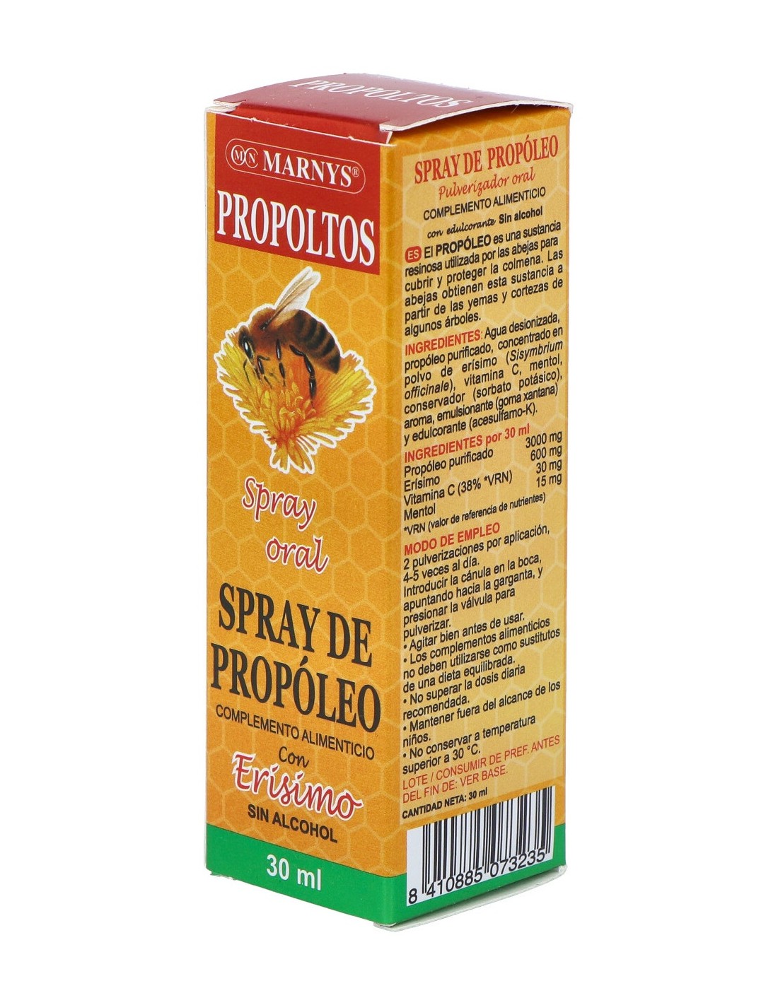 Práctico spray bucal sin alcohol, preparado a base de concentrado de propóleo y erísimo (también conocido como hierba del cantor). Está especialmente indicado en casos de gargantas sensibles.