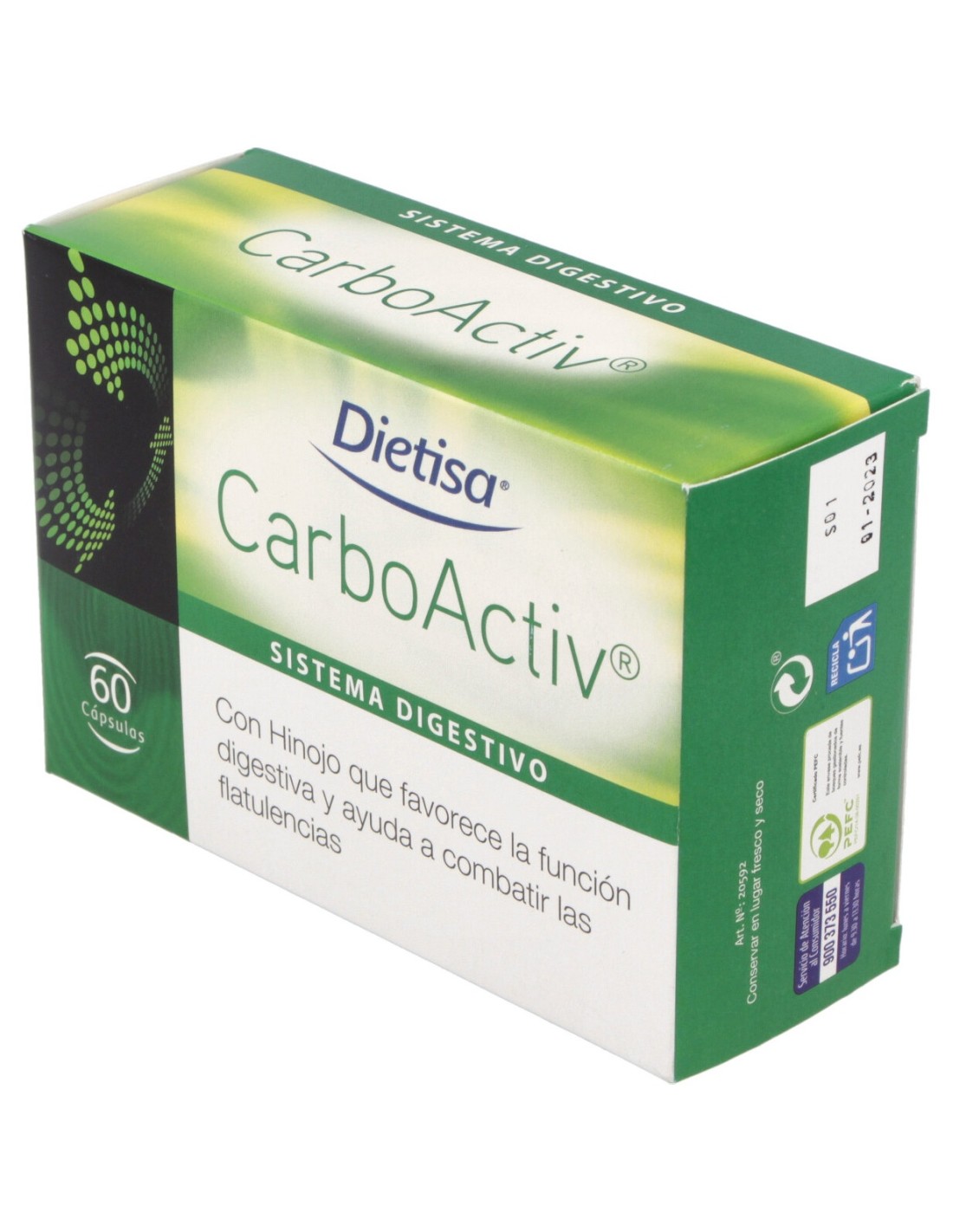 Dietisa Carboactiv es un complemento alimenticio que ayuda a mejorar los trastornos digestivos, sobre todo las flatulencias. Adecuado para personas con problemas digestivos regulares o esporádicos, por lo que es un suplemento indispensable que no puede faltar en tu hogar