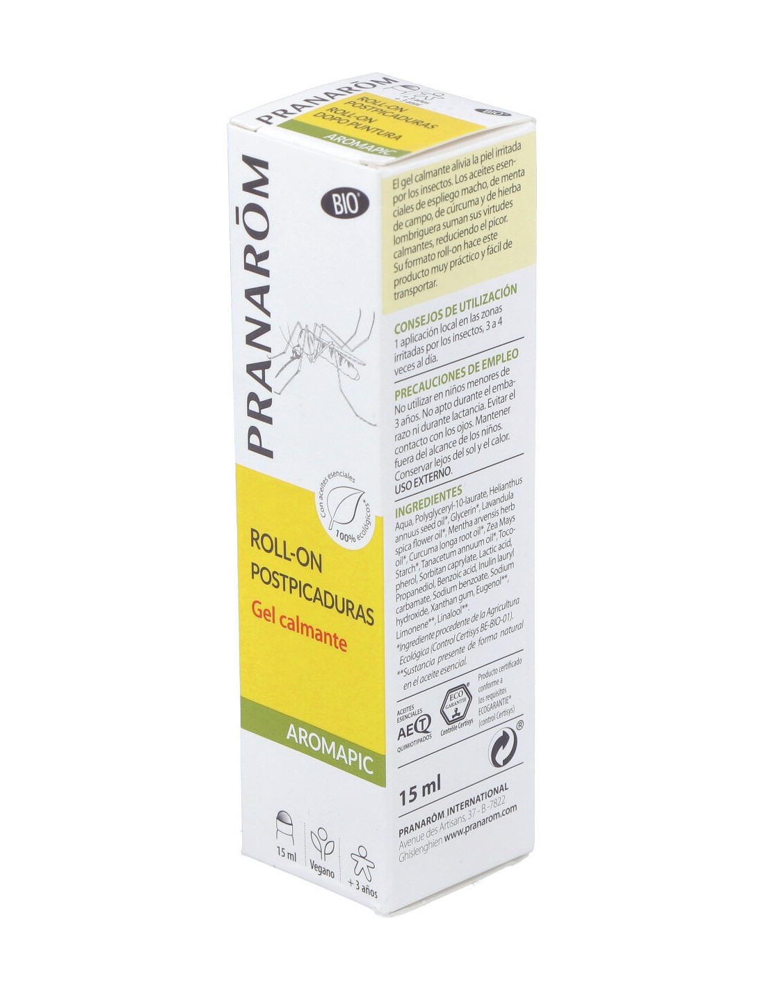 En caso de picadura, el gel calmante alivia inmediatamente el picor. Los aceites esenciales de espliego macho, de manzanilla romana, de katrafay, de menta de campo y de hierba lombriguera, además del aceite vegetal de caléndula, suman sus virtudes apaciguantes y calmantes en un roll-on práctico y fácil de llevar. Apto durante el embarazo y la lactancia.