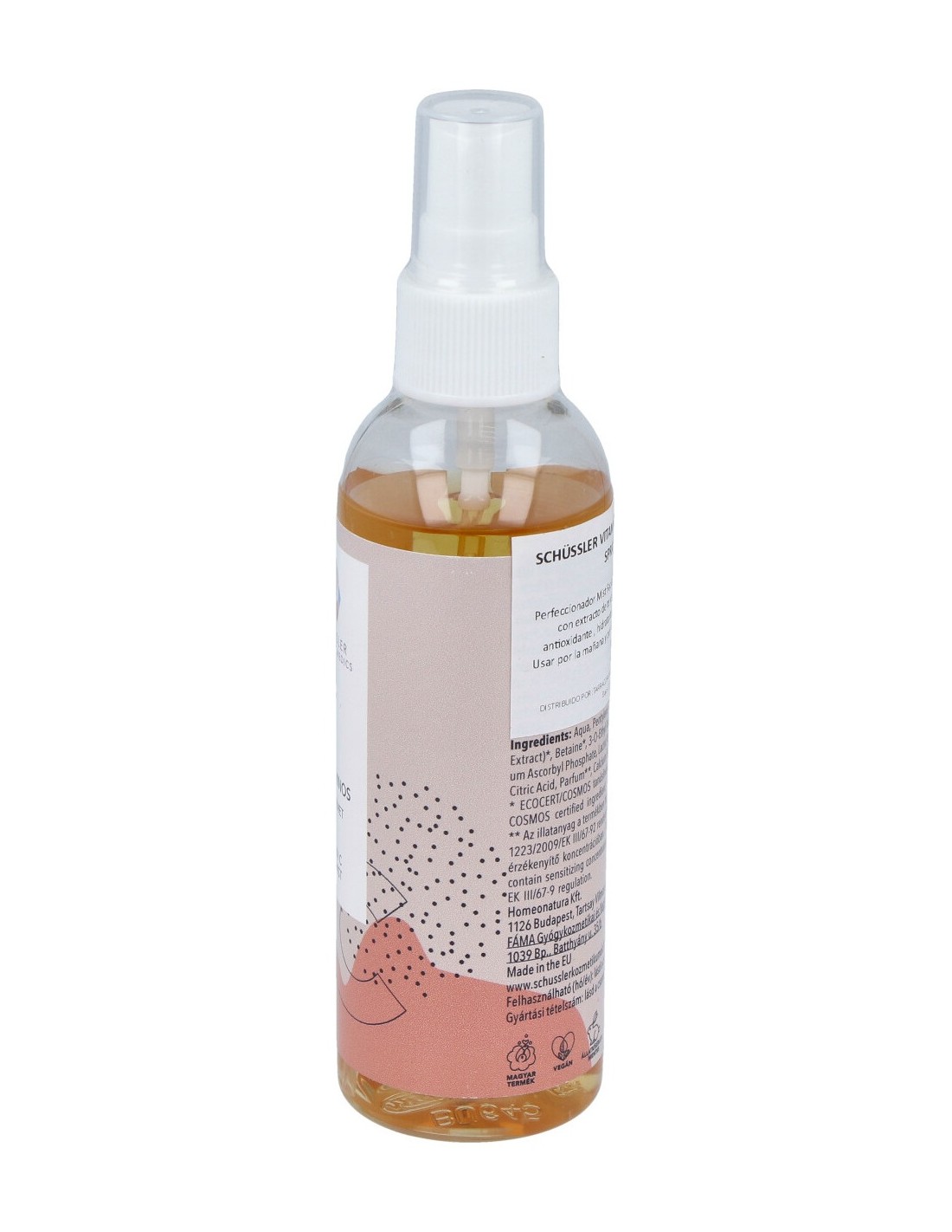 Bruma facial natural enriquecida con dos tipos de derivados de la vitamina C , la sal tisular de Schüssler Nr.1 (Calcium fluoratum) y el extracto de té verde para regenerar, tonificar, hidratar y rejuvenecer eficazmente la piel de todo tipo de pieles.