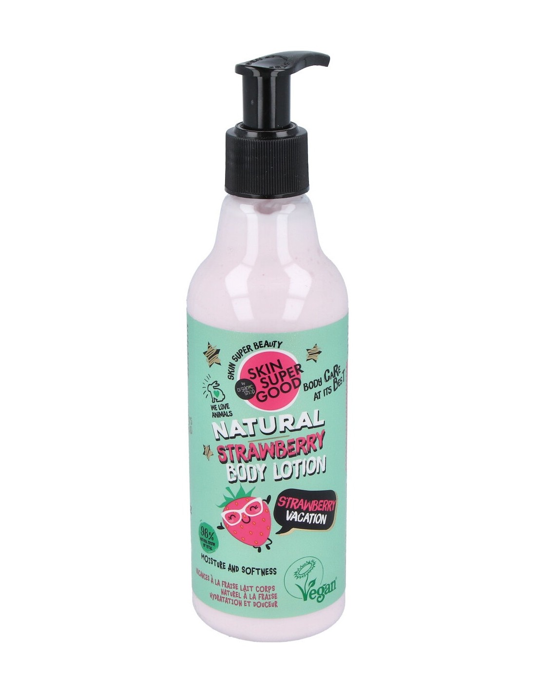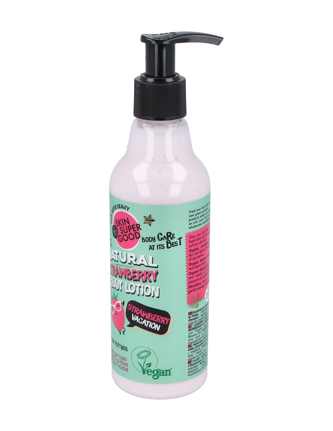 El extracto de fresa orgánico suaviza la piel y le da el aroma de las bayas maduras. El extracto de plátano orgánico le da a la piel un verdadero impulso vitamínico. El aceite de almendras orgánico es rico en proteínas, hidrata la piel, ayuda a preservar su juventud y belleza.