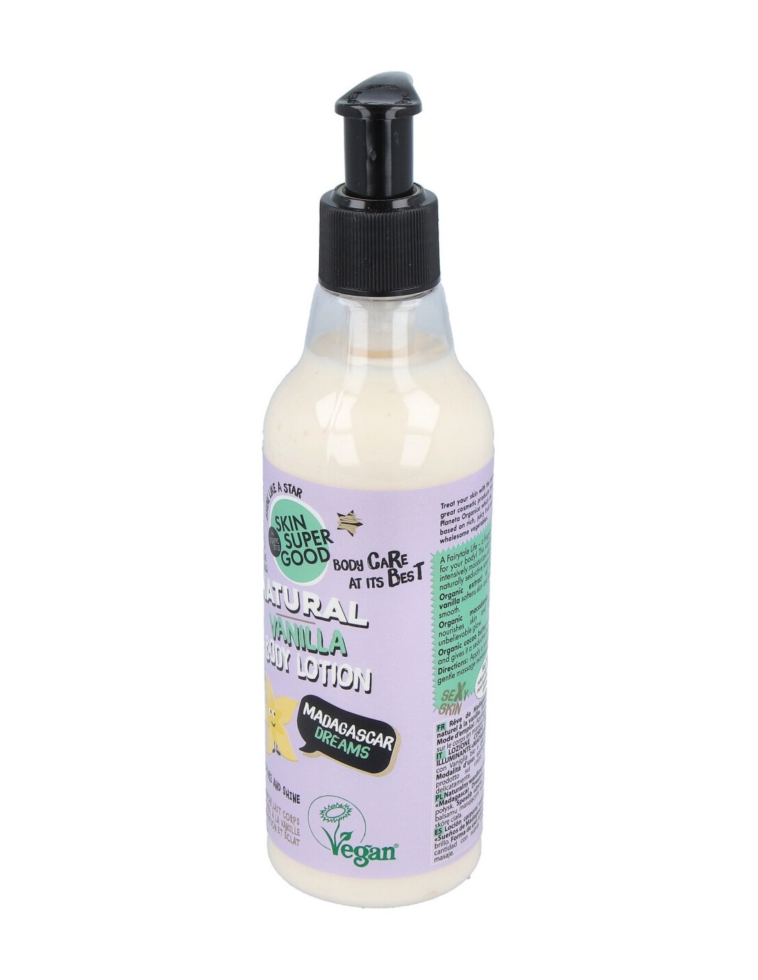 Planeta Orgánica Vanilla Body Lotion Madagascar Dreams 250ml es una loción corporal hidratante elaborada a base de aceite natural de coco. Además, contiene aceite de nuez de macadamia, extracto de papaya, semillas de cacao y extracto de vainilla de Madagascar, para una piel más suave y elástica.