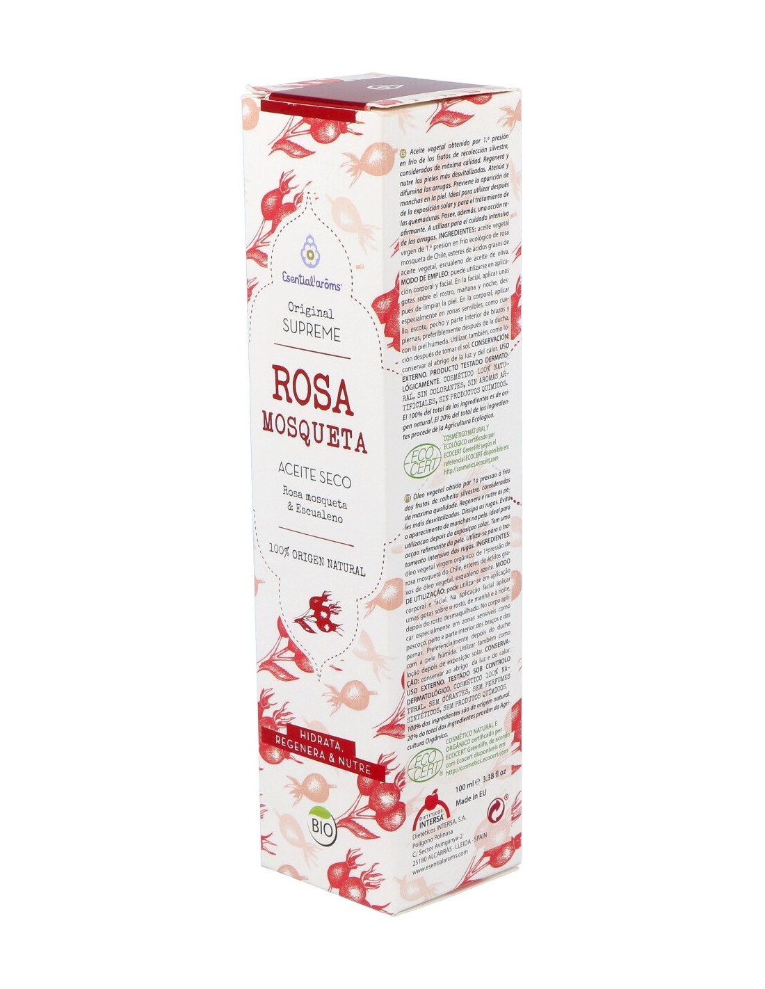 La rosa mosqueta es un arbusto silvestre de la familia de las rosáceas con muchas propiedades. Por ejemplo, se aprovecha el aceite que proviene de sus semillas para productos cosméticos. Su capacidad cicatrizante es muy conocida, sobre todo para tratar suturas, posoperatorios y quemaduras. Altamente regenerante, activa los fibroblastos que darán lugar a la síntesis del colágeno y la elastina dérmica. Además, su carácter astringente une los bordes rotos de la epidermis para facilitar la cicatrización natural. Es antioxidante, nutre e hidrata, así como protege contra el envejecimiento prematuro y ayuda a eliminar las arrugas.