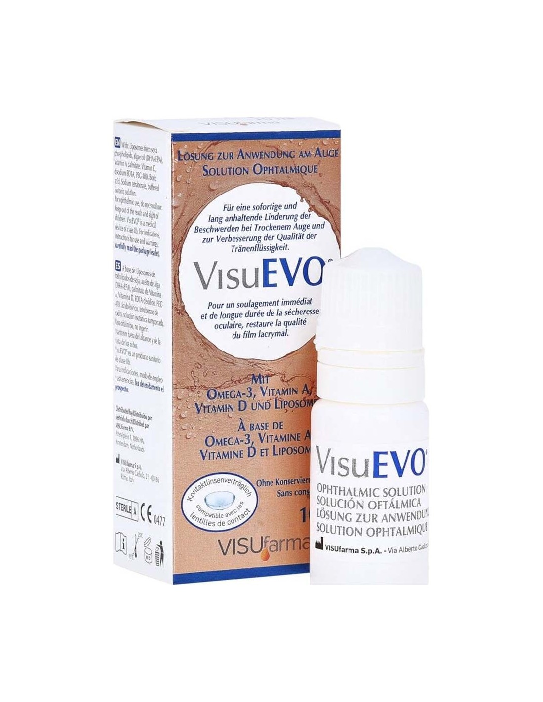 Reduce la evaporación excesiva de la película lagrimal, a menudo provocada por estados inflamatorios de la superficie ocular, gracias a la presencia de los liposomas (fosfolípidos), los Omega-3 y la vitamina D.